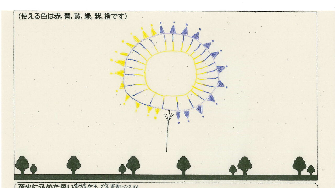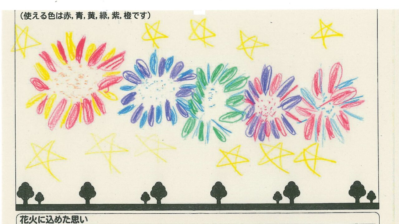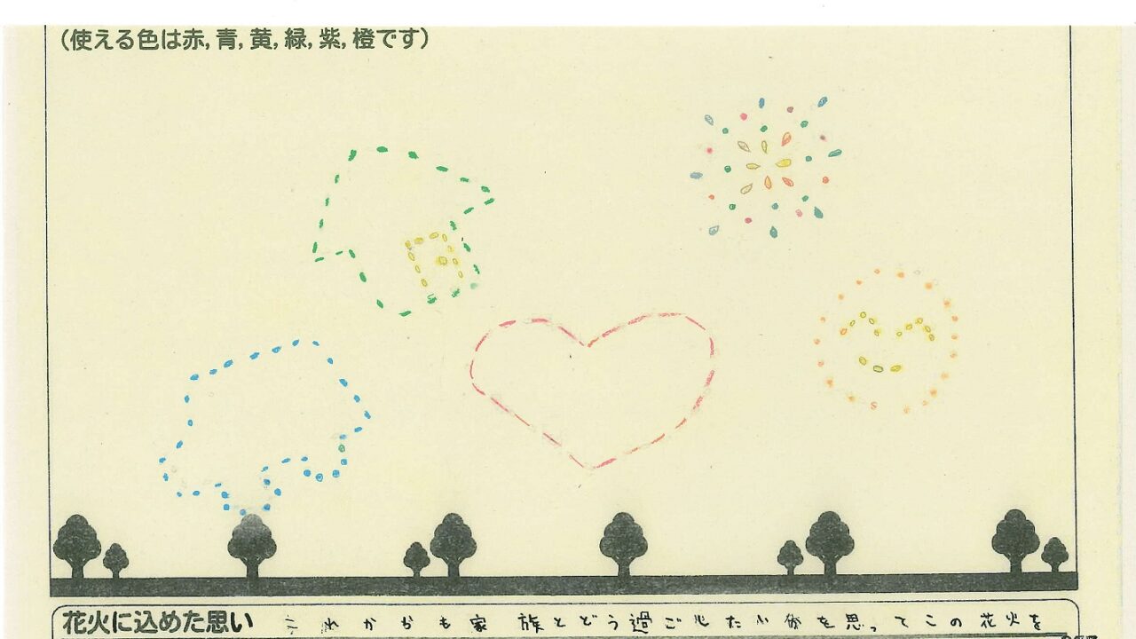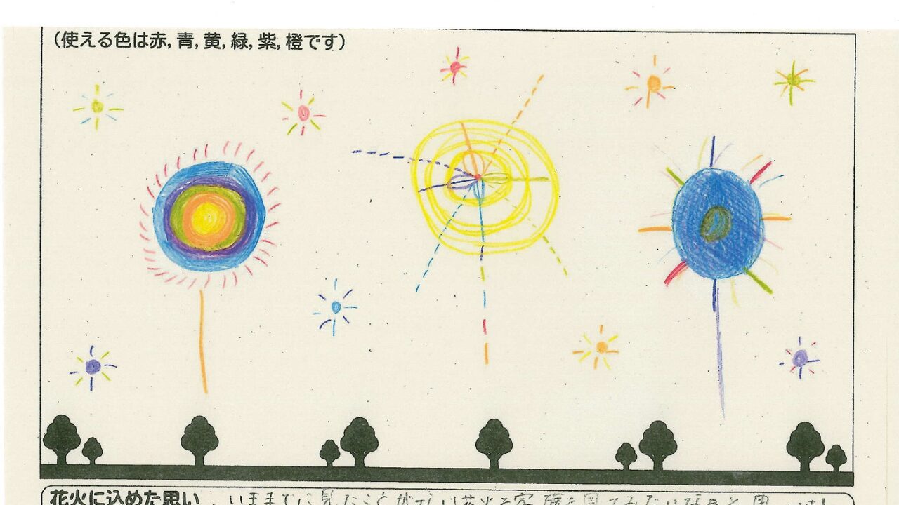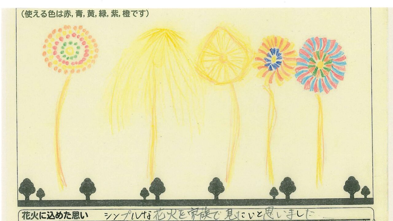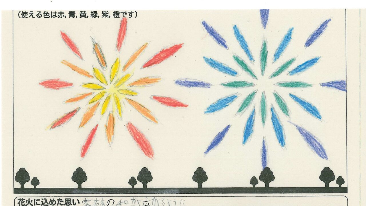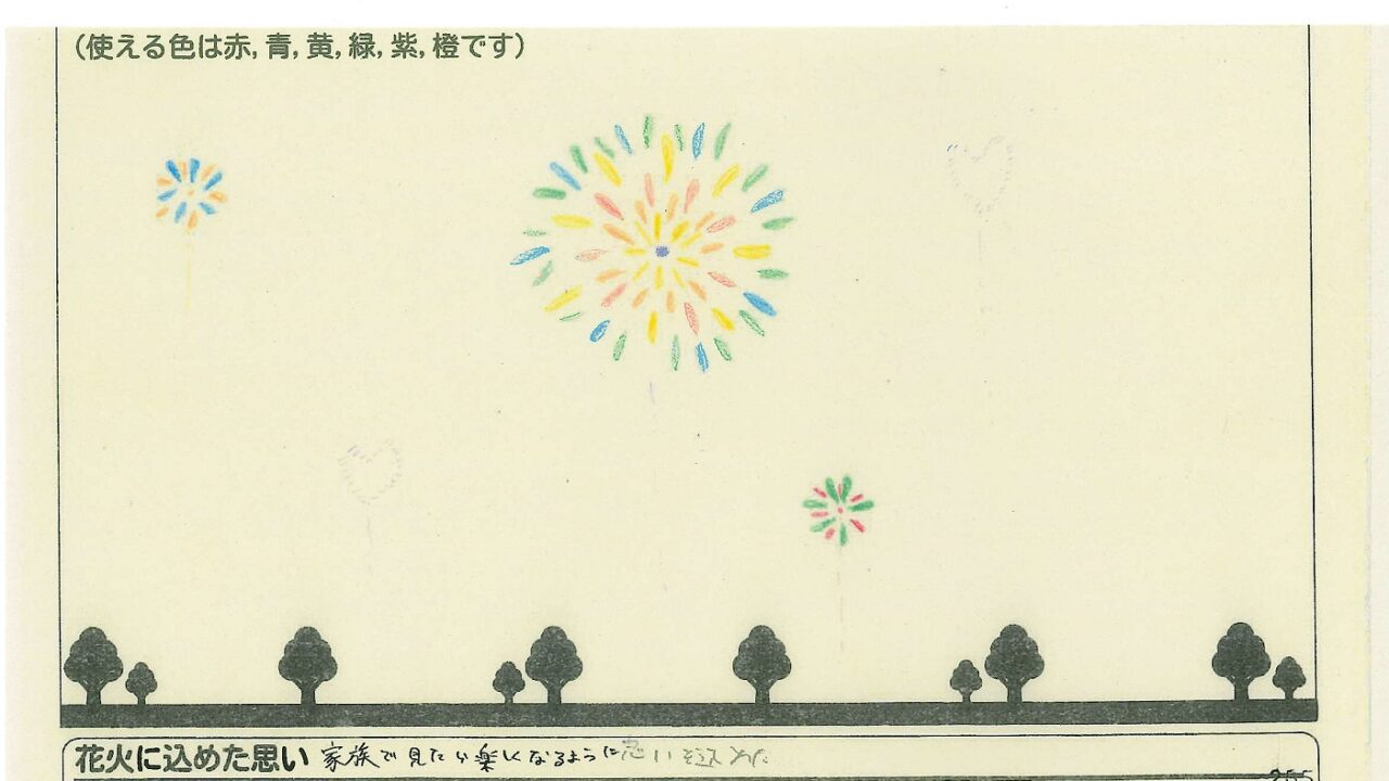 「家族と見たい花火」をテーマに、市内小学生が描いてくれた作品の中から大賞に選ばれた3作品が9月13日(土)に打ち上げられます!