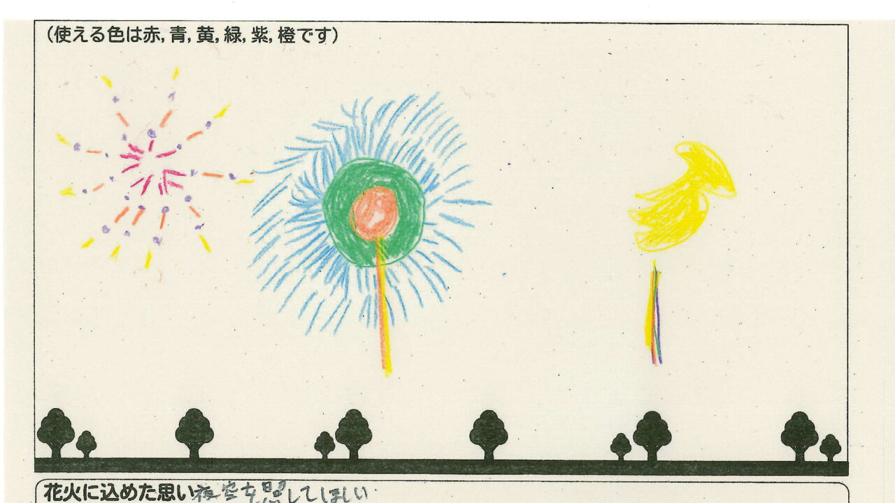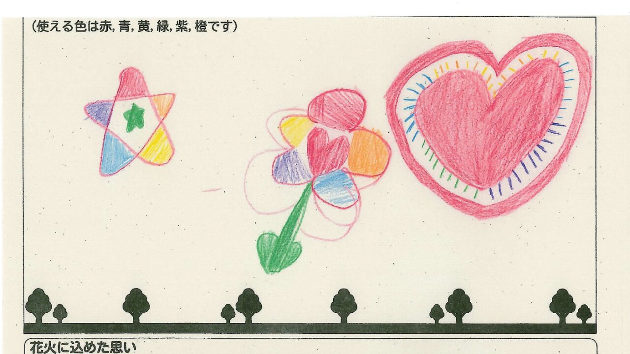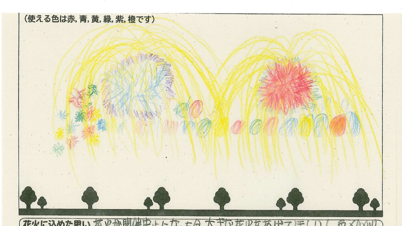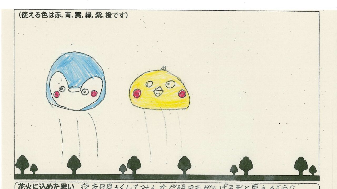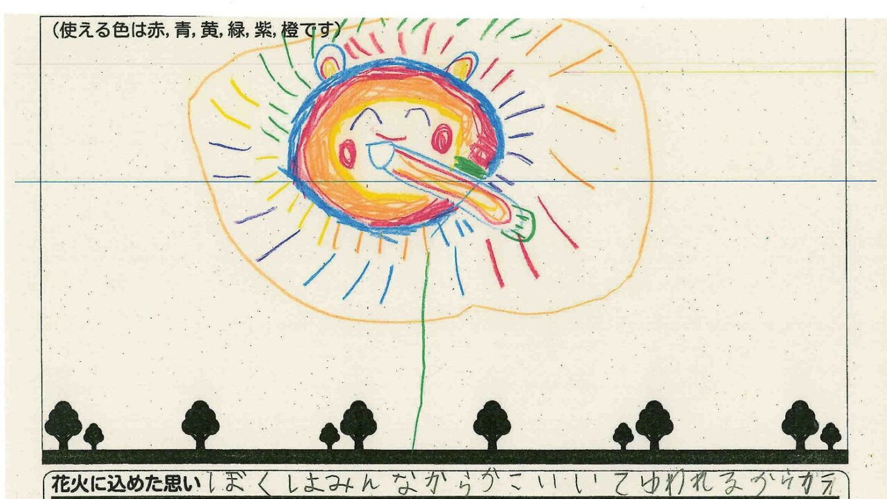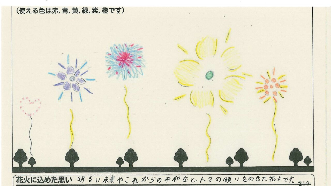 「家族と見たい花火」をテーマに、市内小学生が描いてくれた作品の中から大賞に選ばれた3作品が9月13日(土)に打ち上げられます!