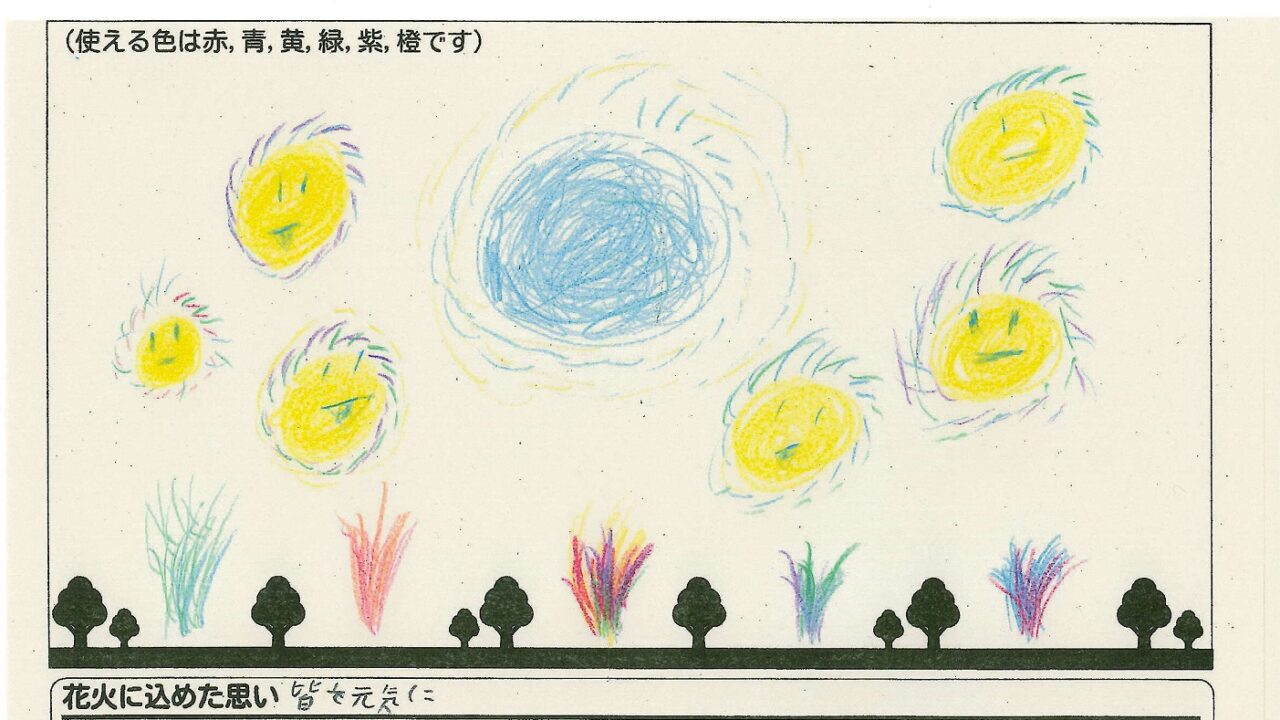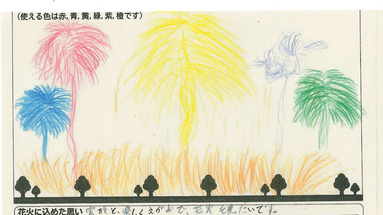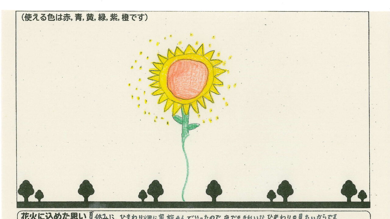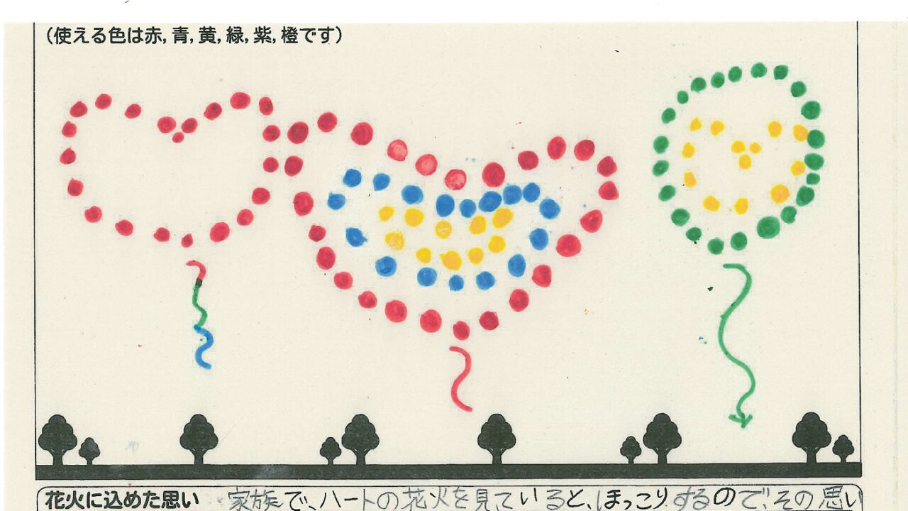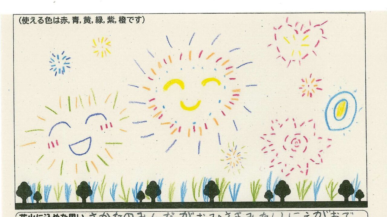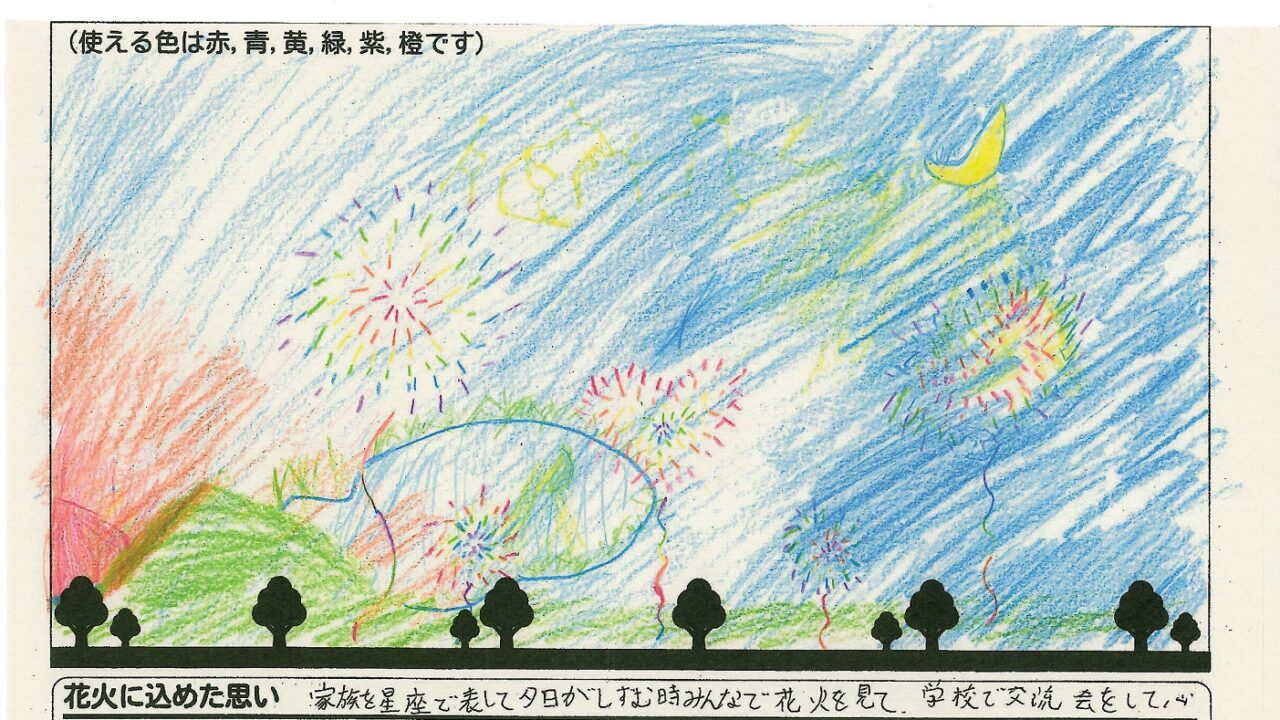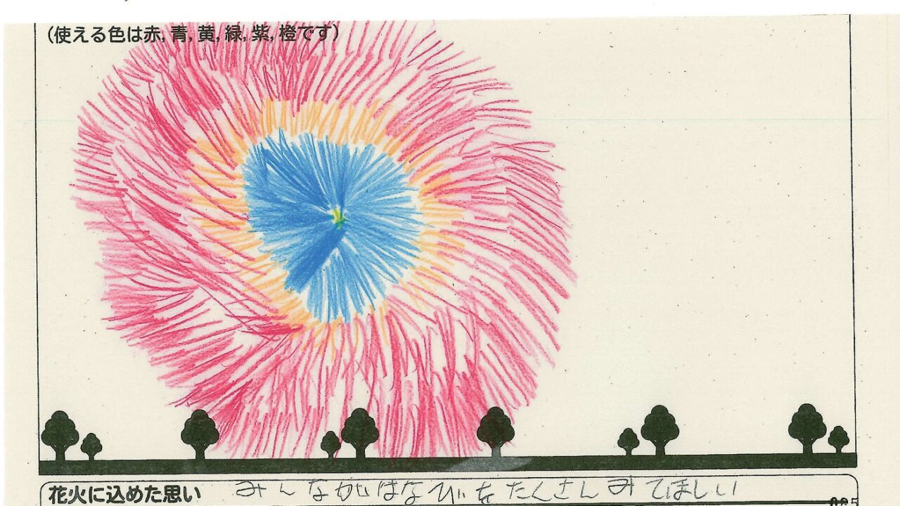 「家族と見たい花火」をテーマに、市内小学生が描いてくれた作品の中から大賞に選ばれた3作品が9月13日(土)に打ち上げられます!