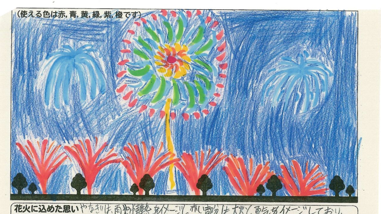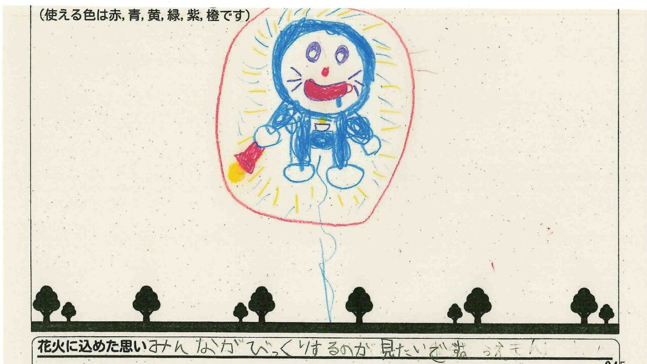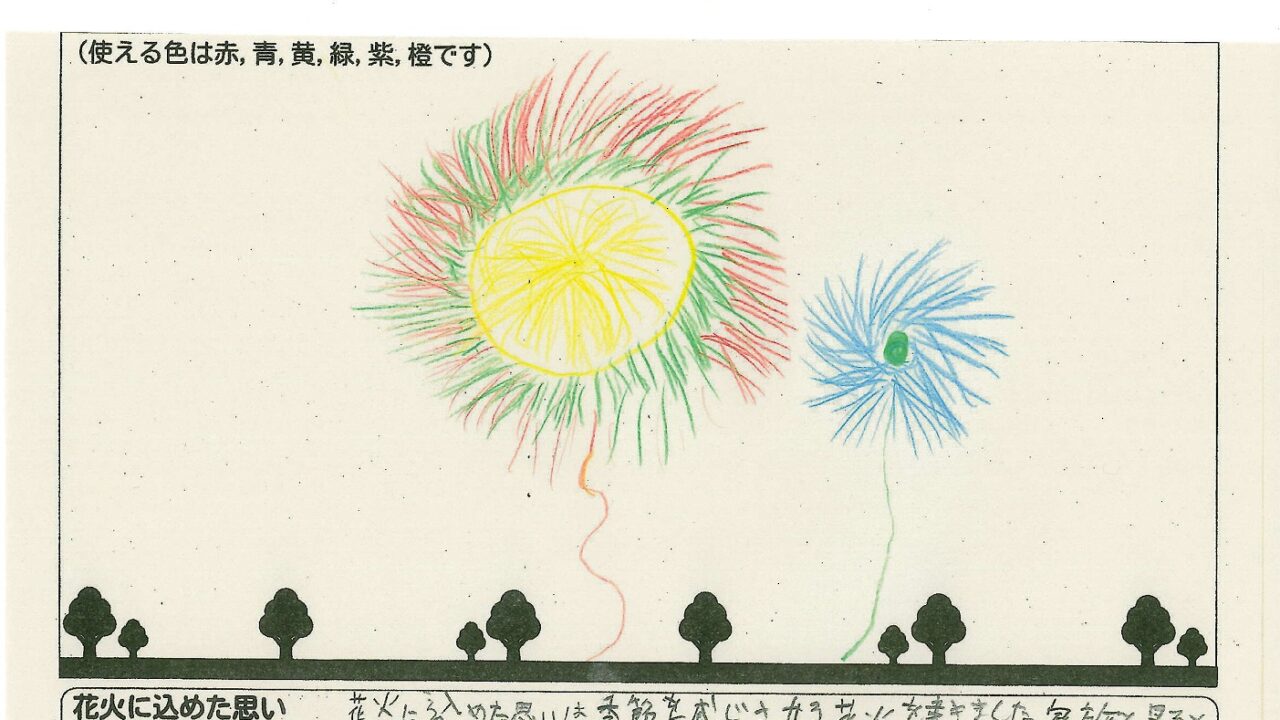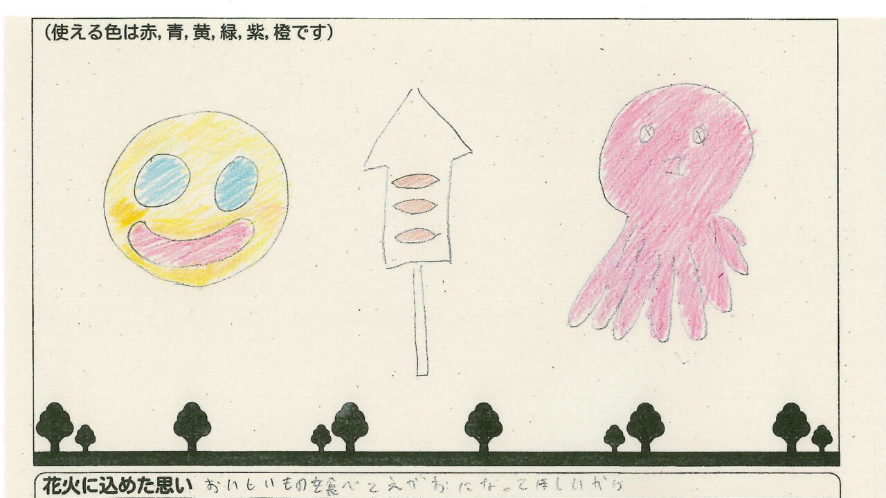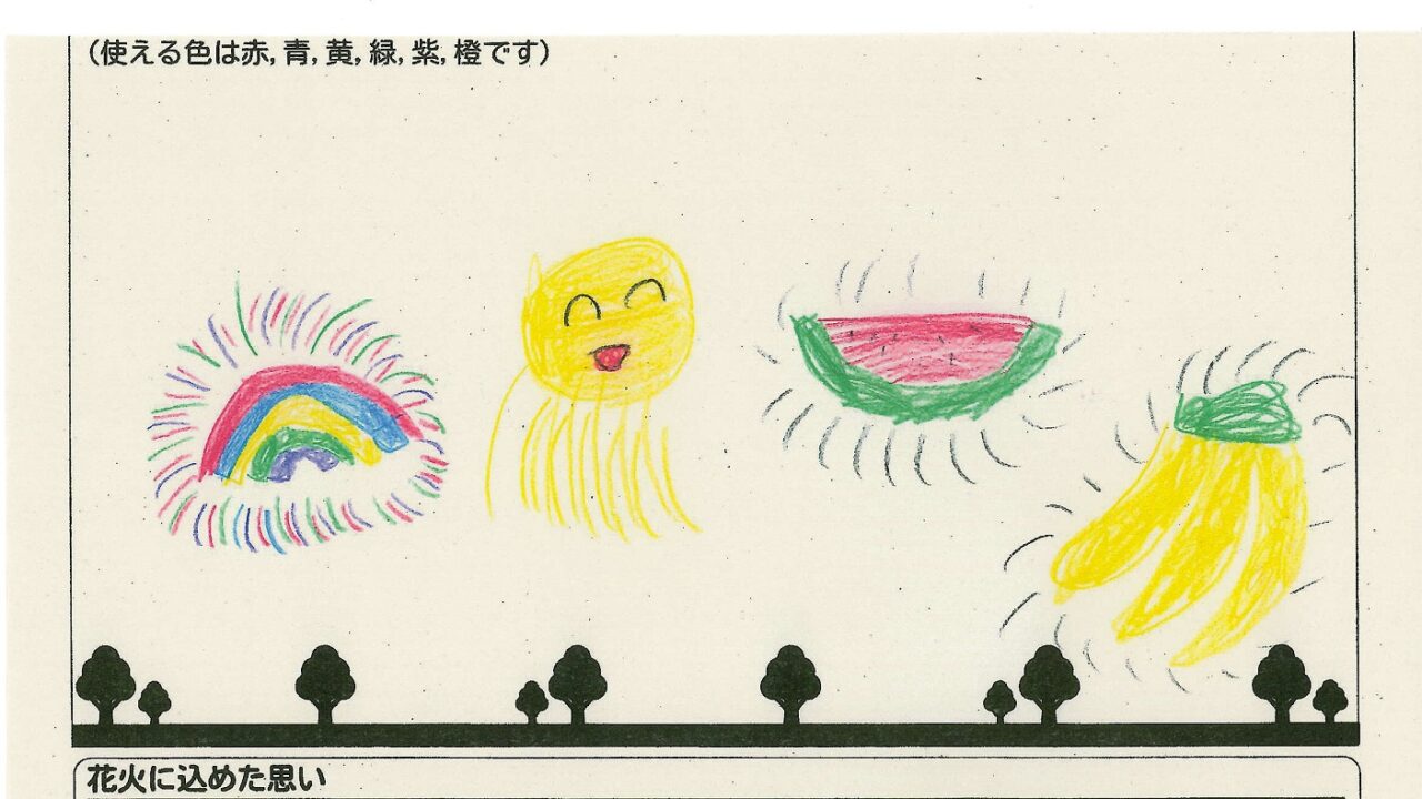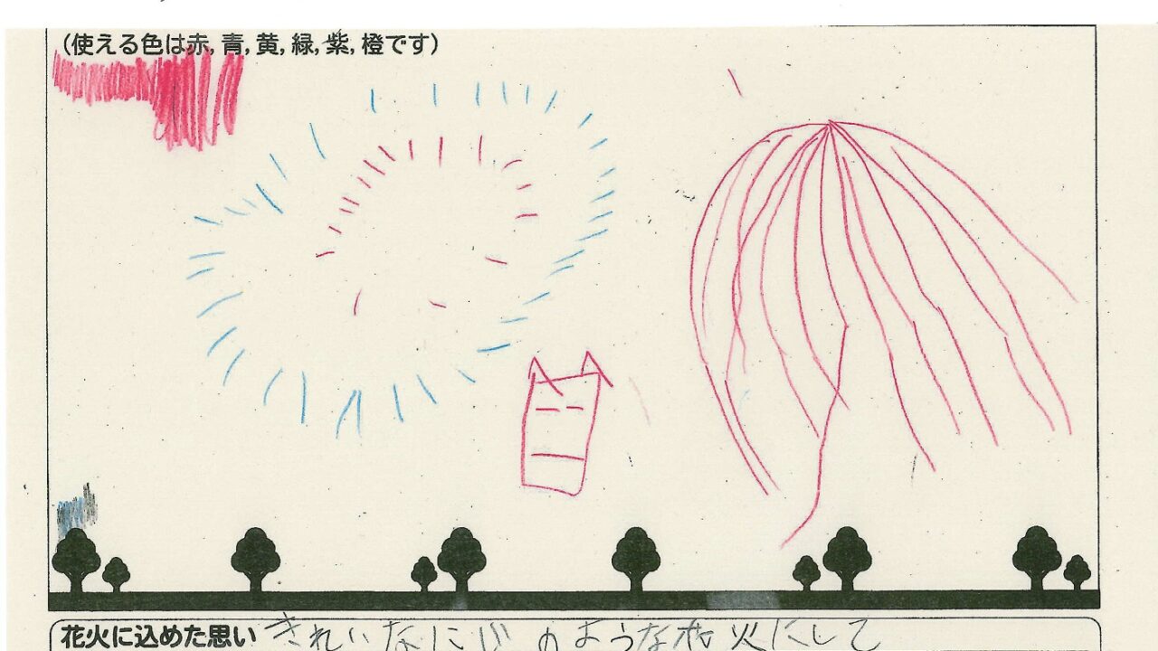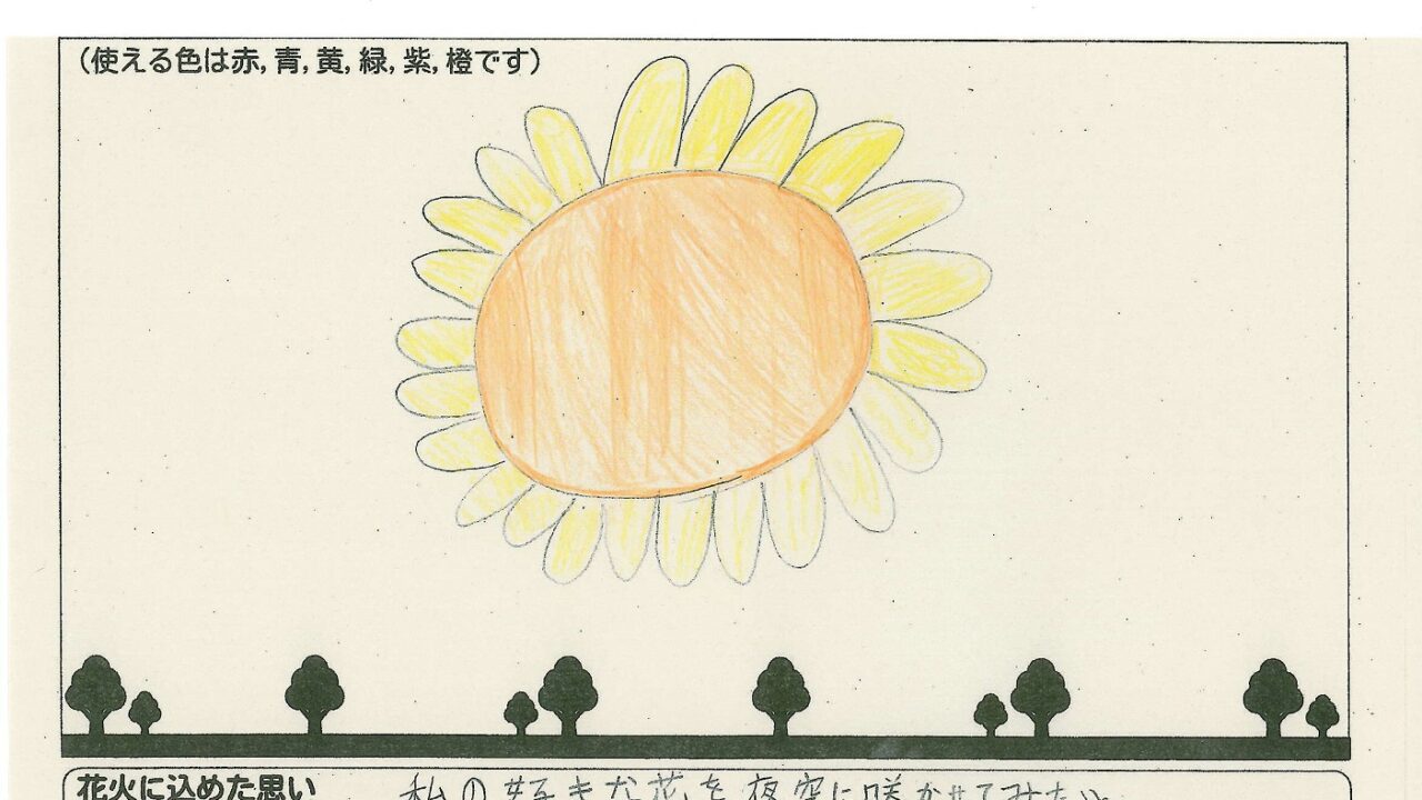 「家族と見たい花火」をテーマに、市内小学生が描いてくれた作品の中から大賞に選ばれた3作品が9月13日(土)に打ち上げられます!