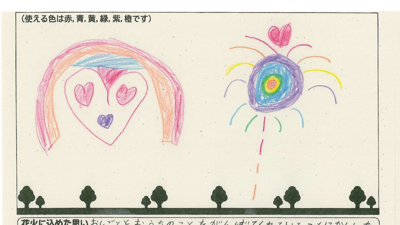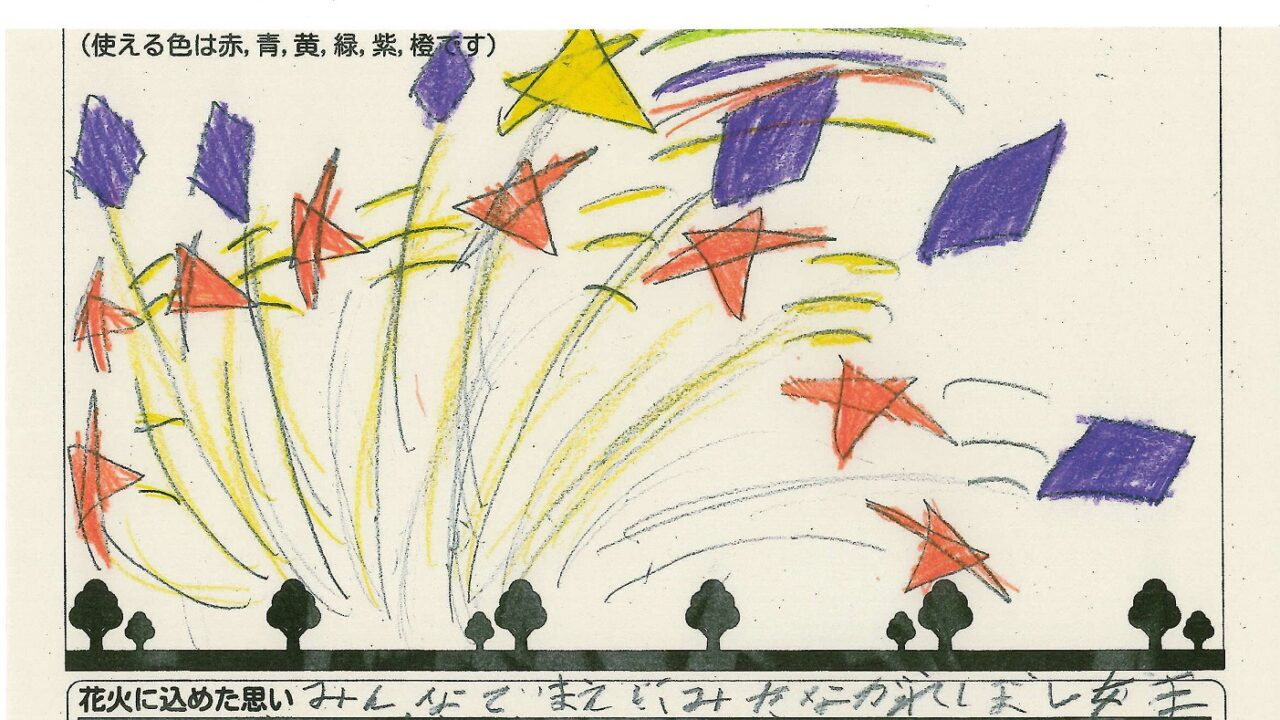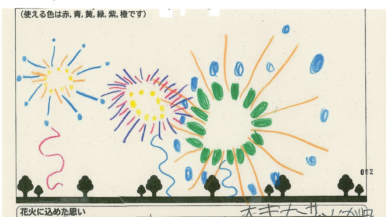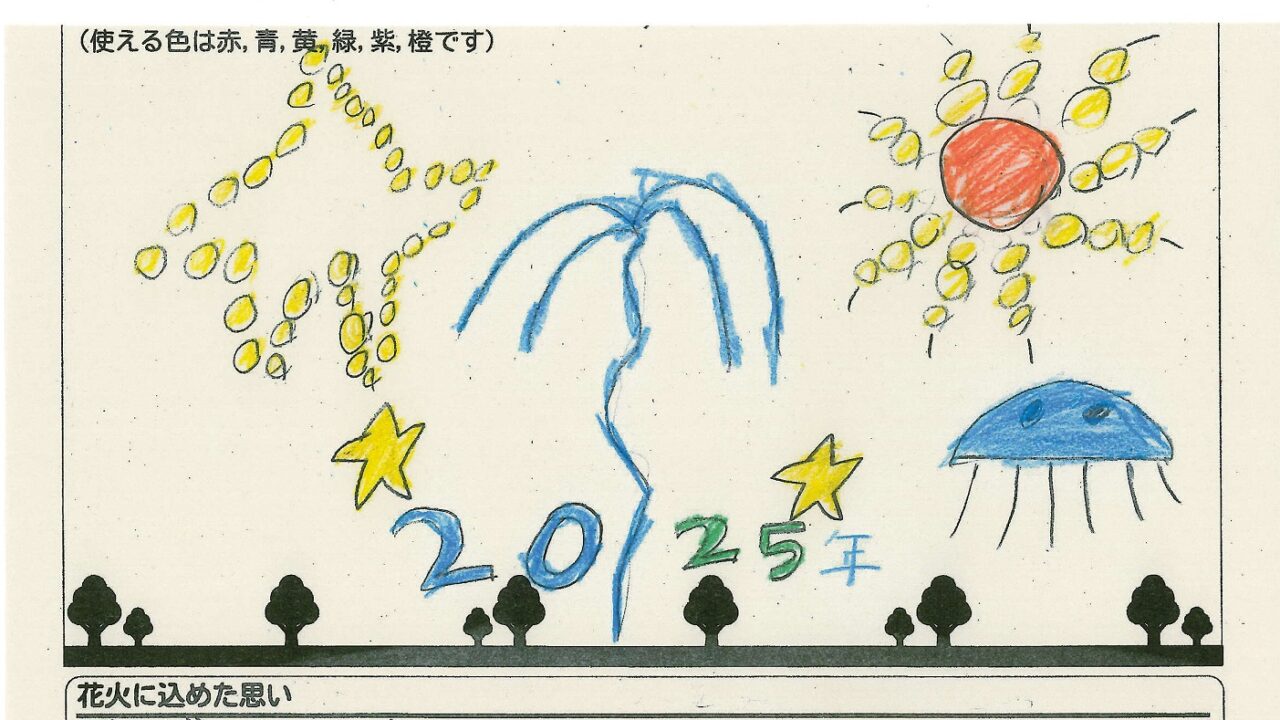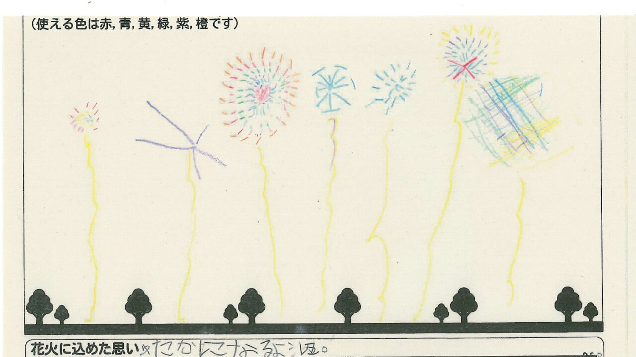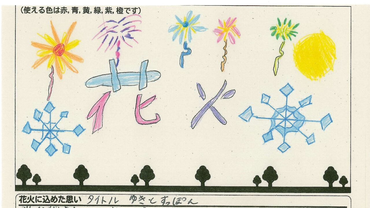 「家族と見たい花火」をテーマに、市内小学生が描いてくれた作品の中から大賞に選ばれた3作品が9月13日(土)に打ち上げられます!
