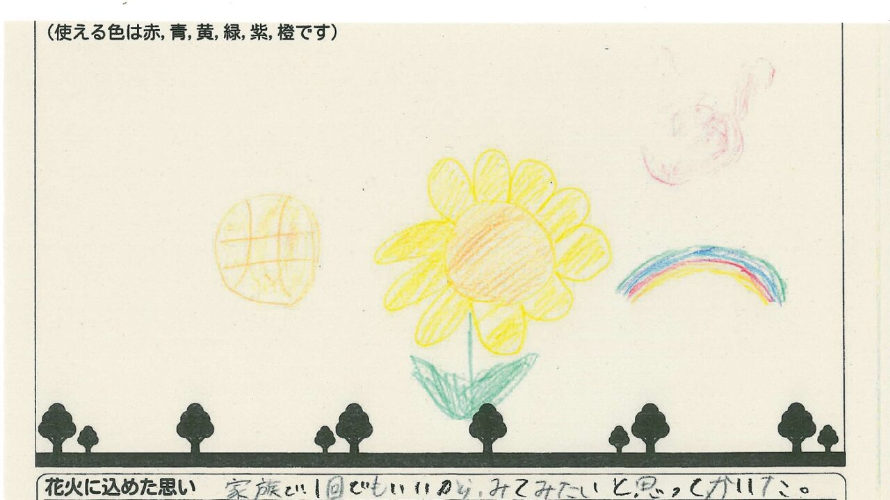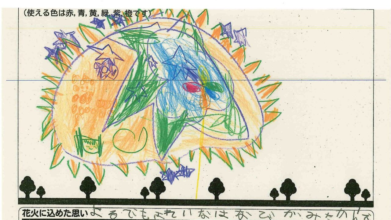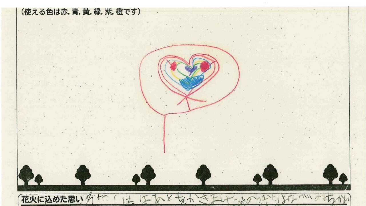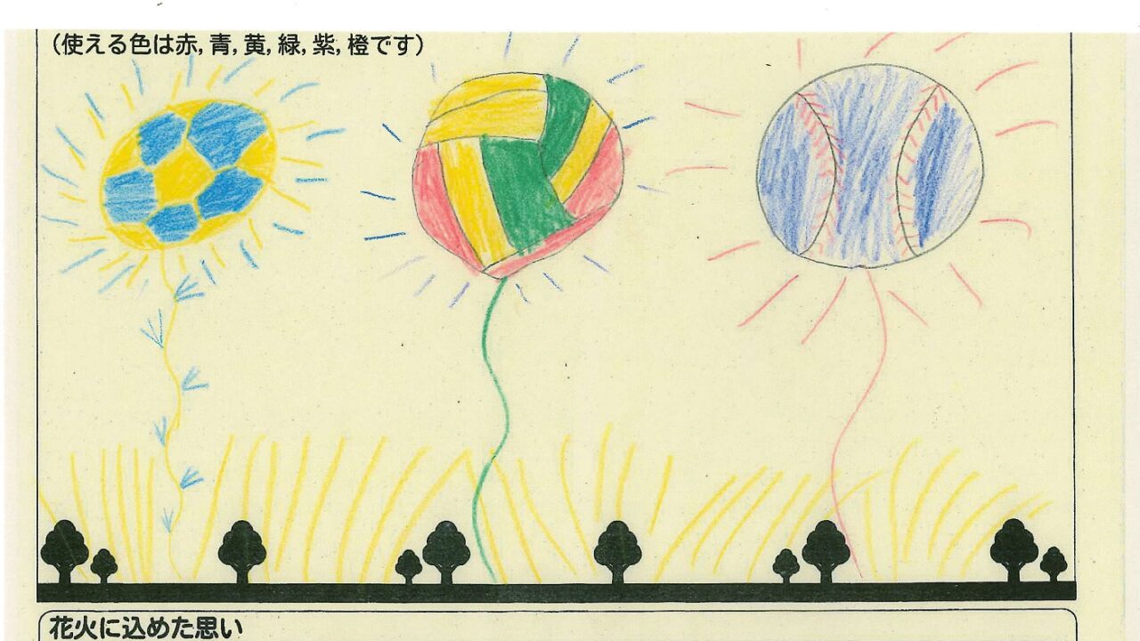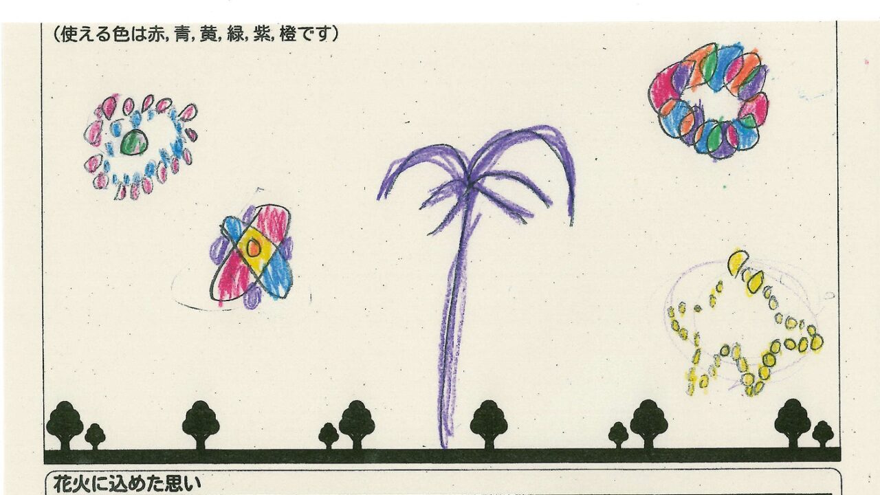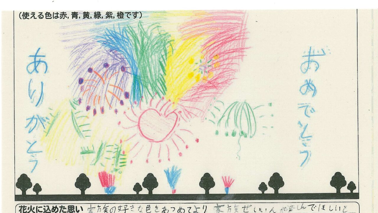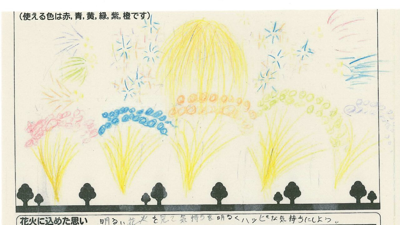 「家族と見たい花火」をテーマに、市内小学生が描いてくれた作品の中から大賞に選ばれた3作品が9月13日(土)に打ち上げられます!