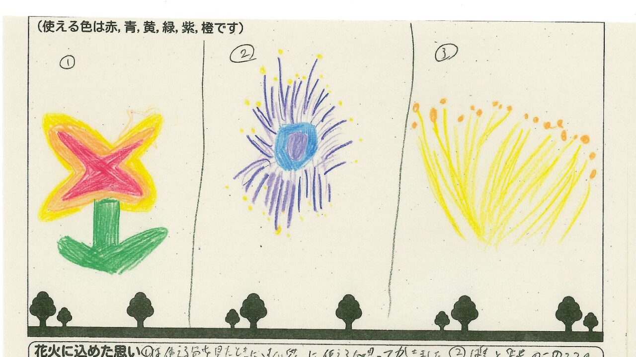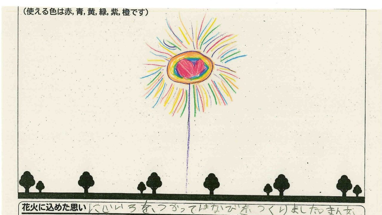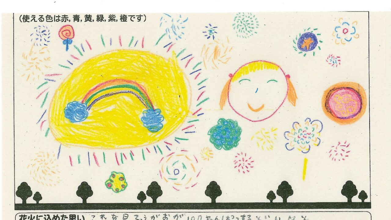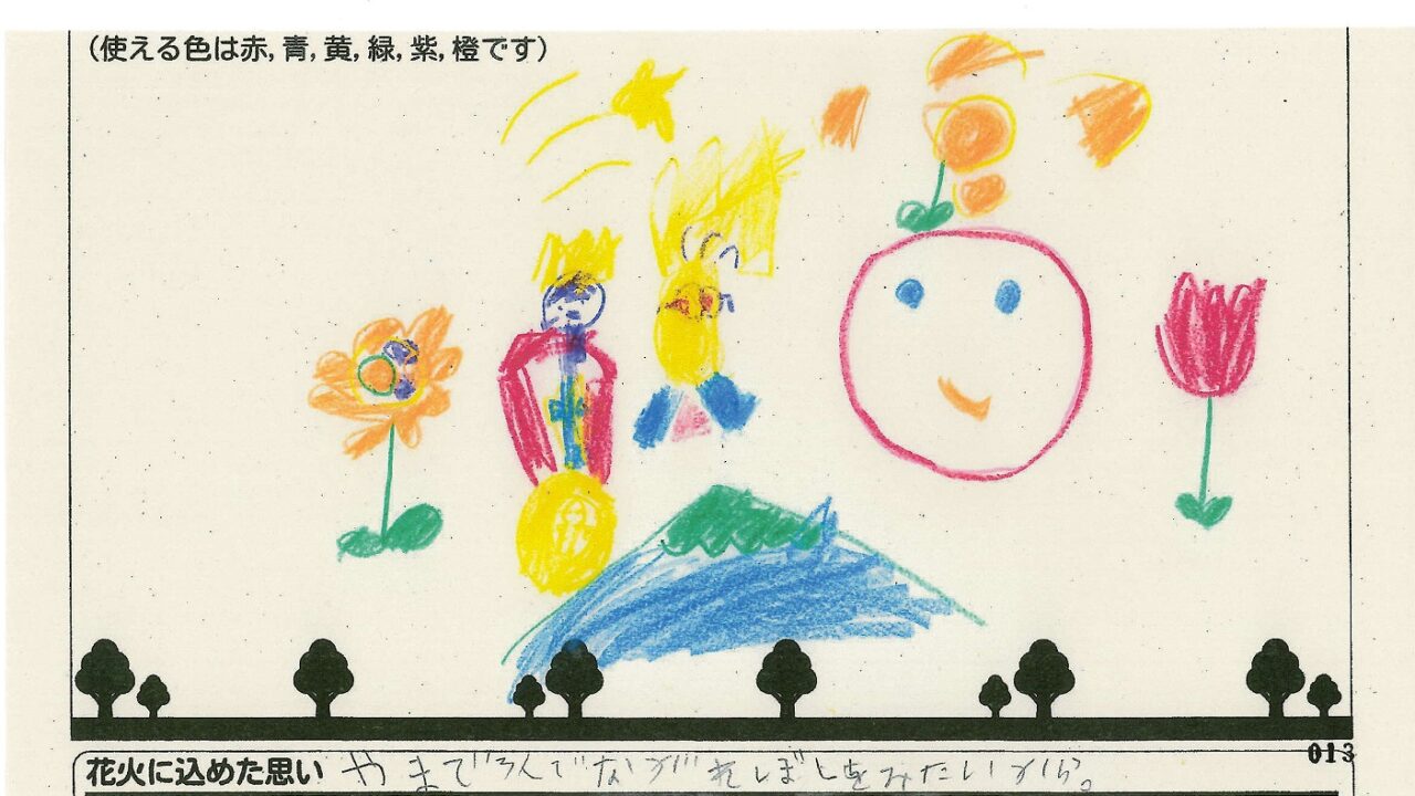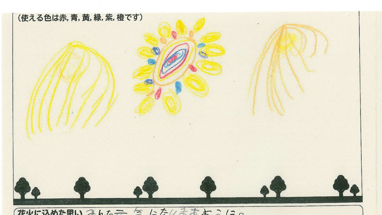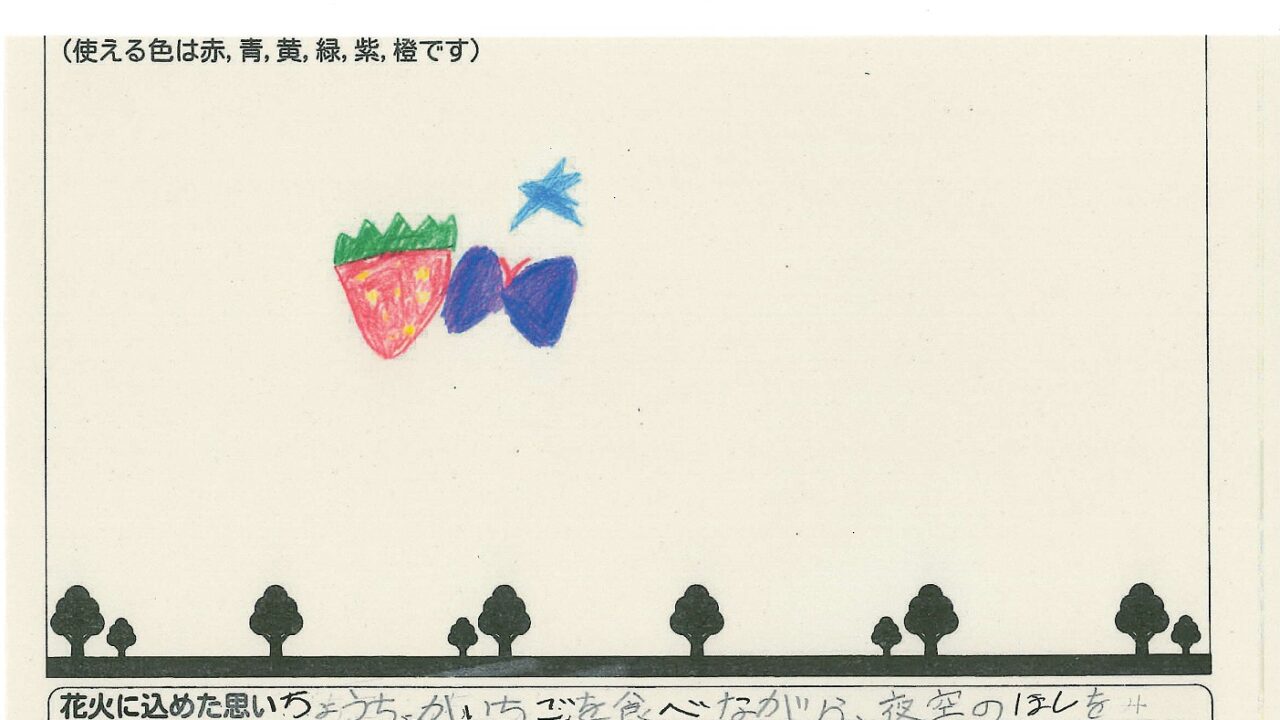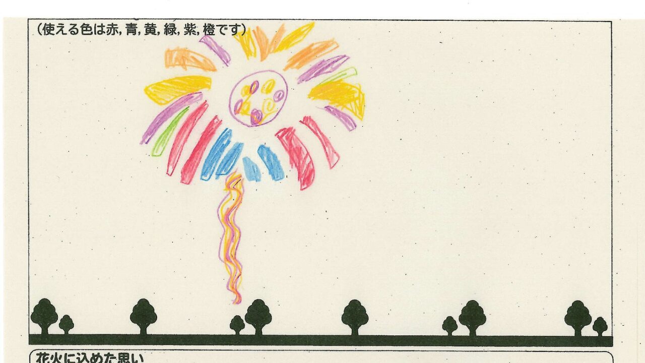 「家族と見たい花火」をテーマに、市内小学生が描いてくれた作品の中から大賞に選ばれた3作品が9月13日(土)に打ち上げられます!