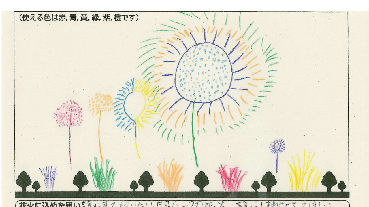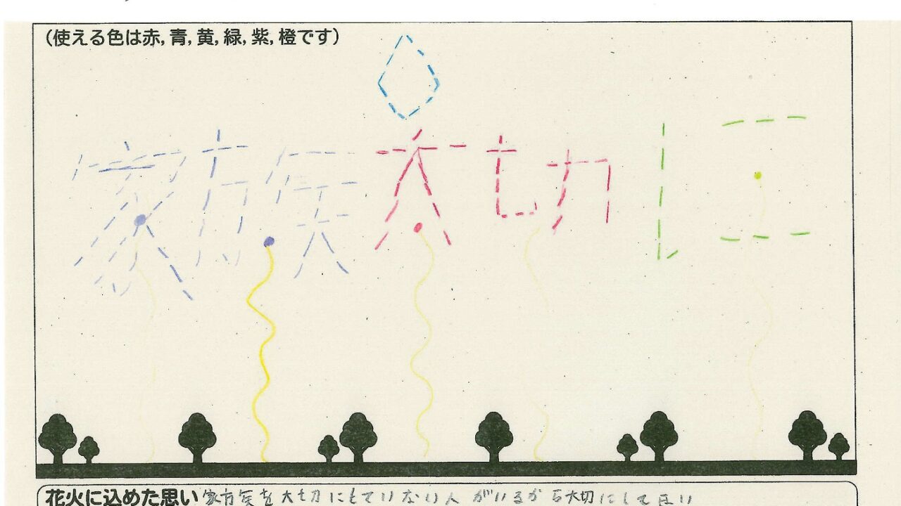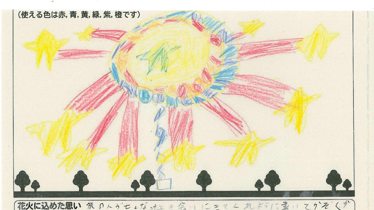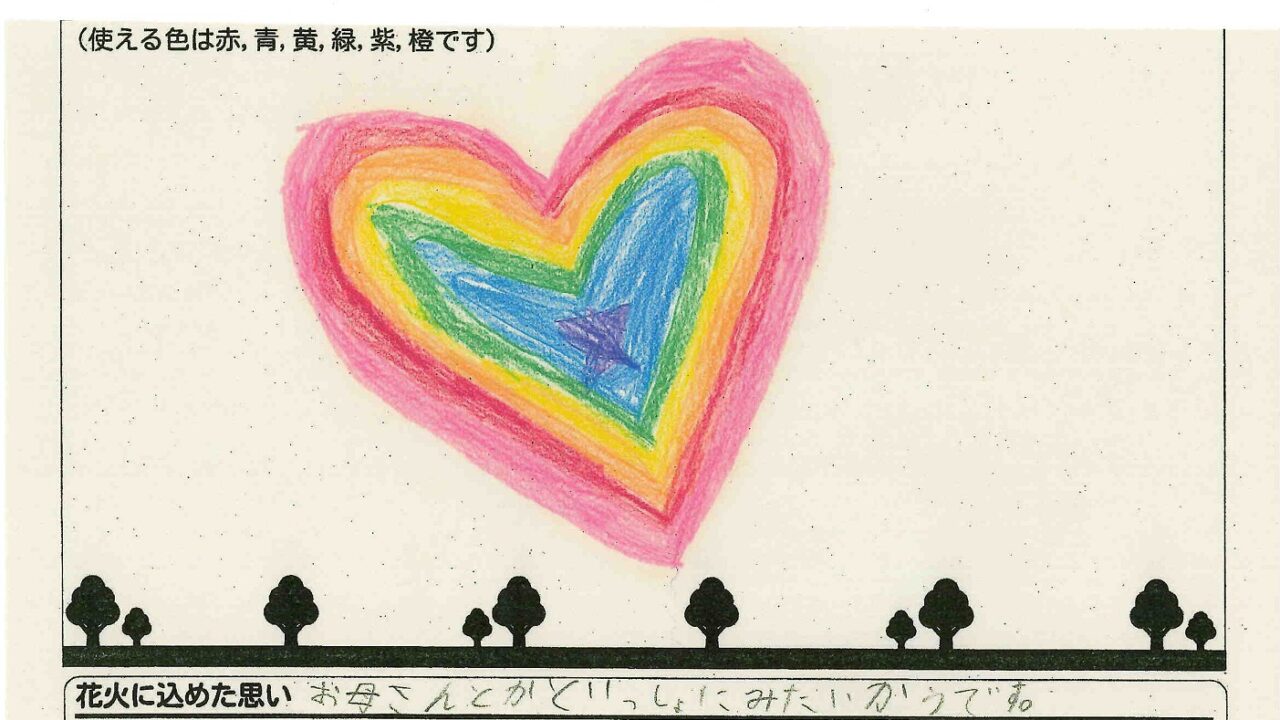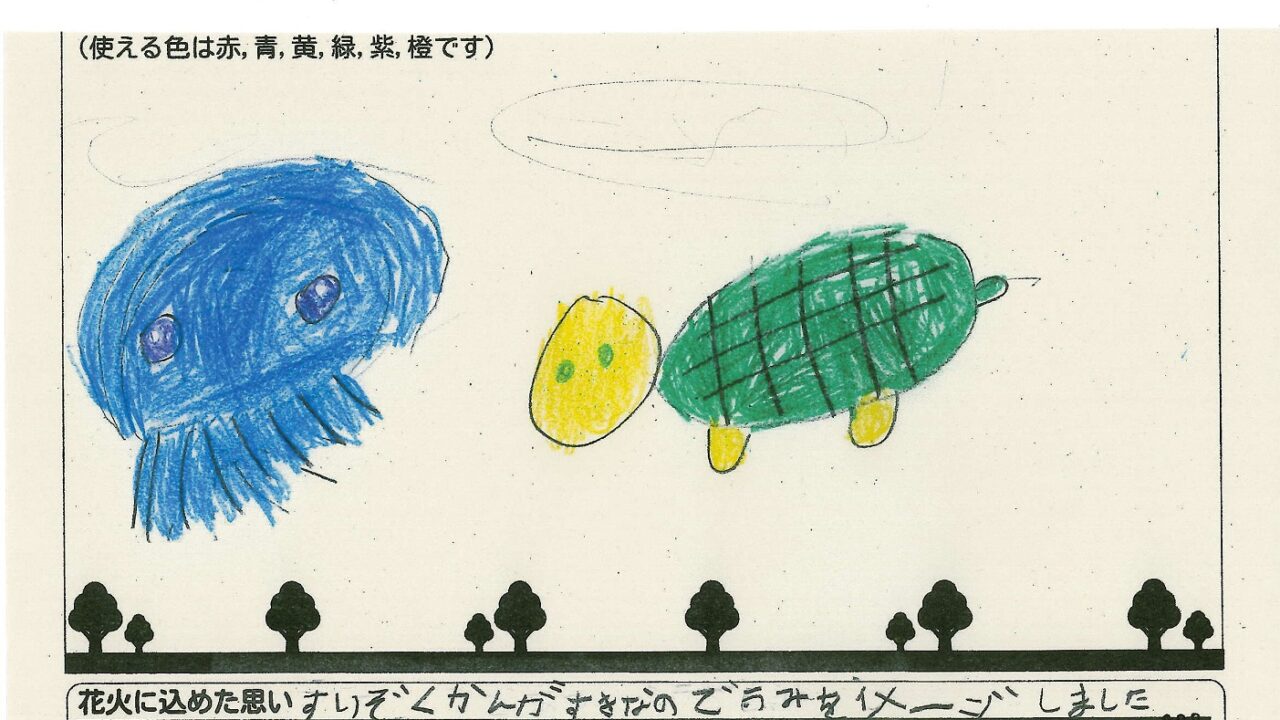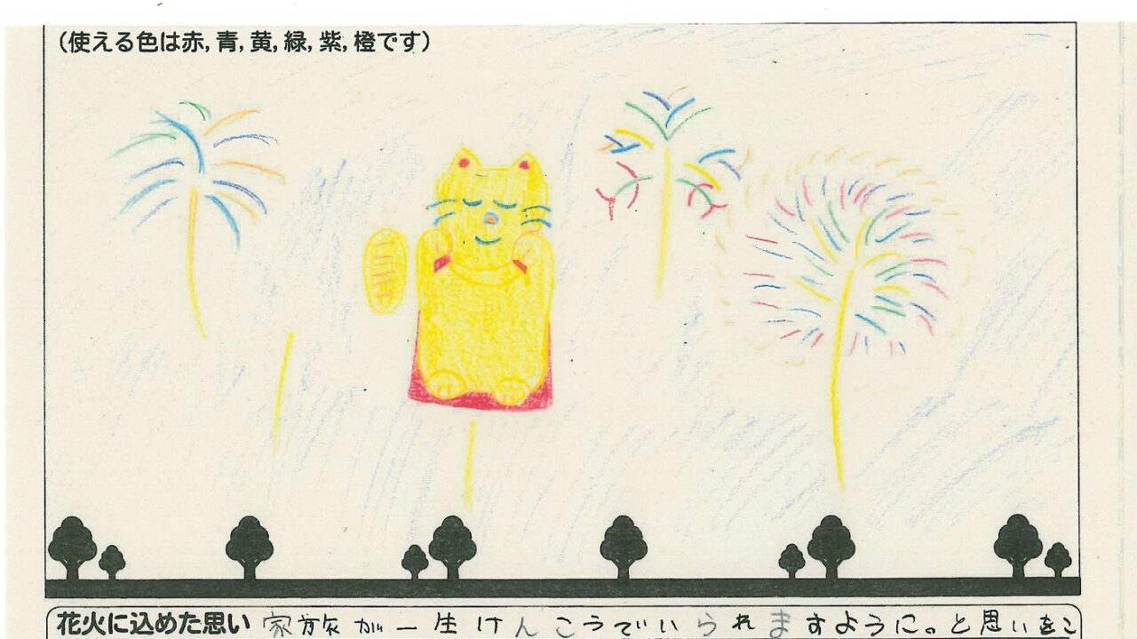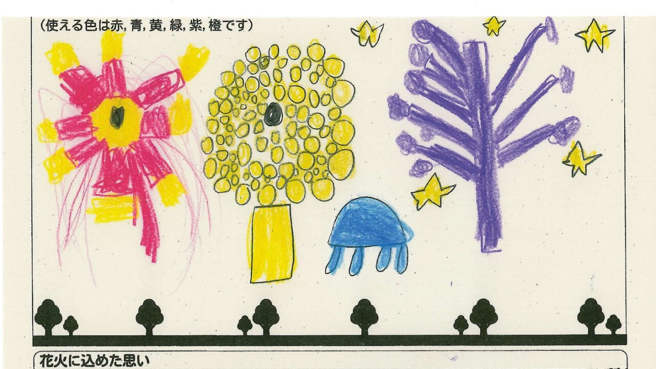 「家族と見たい花火」をテーマに、市内小学生が描いてくれた作品の中から大賞に選ばれた3作品が9月13日(土)に打ち上げられます!
