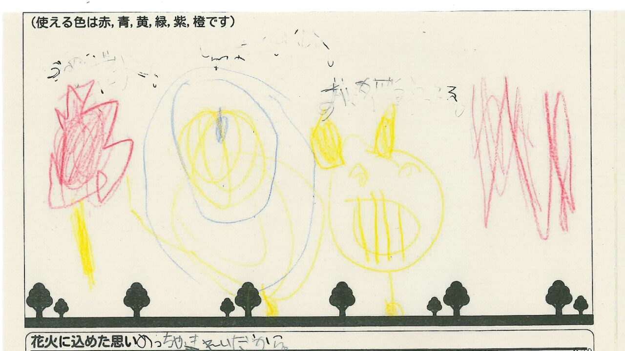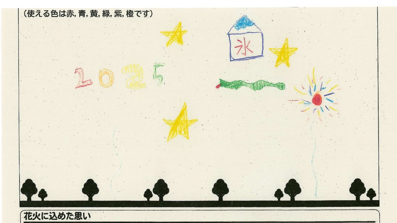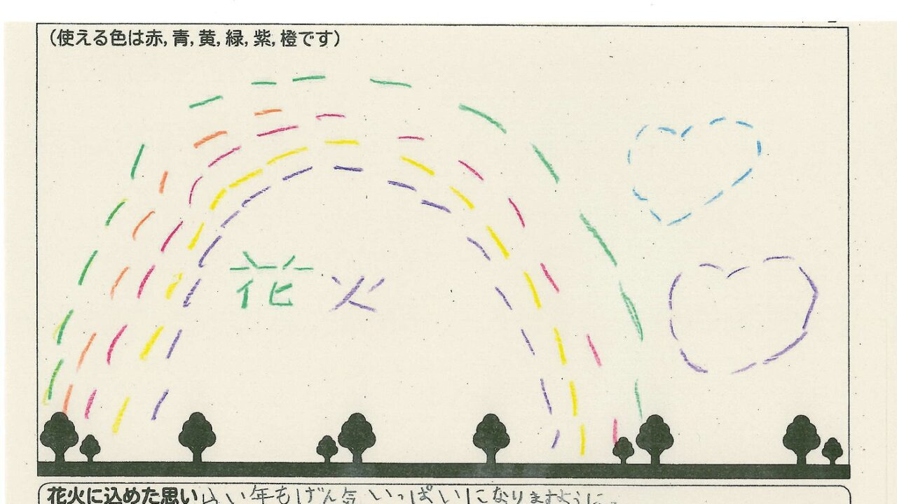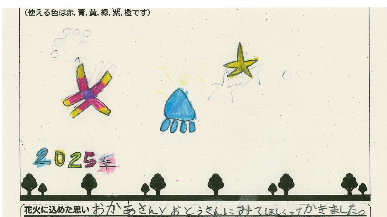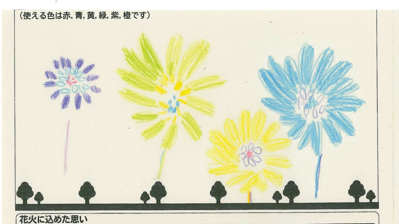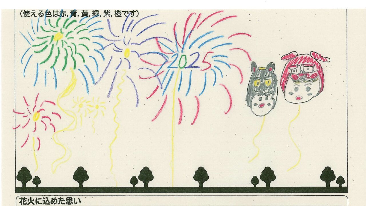 「家族と見たい花火」をテーマに、市内小学生が描いてくれた作品の中から大賞に選ばれた3作品が9月13日(土)に打ち上げられます!