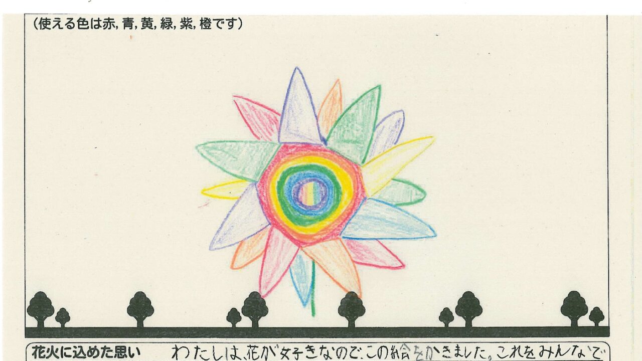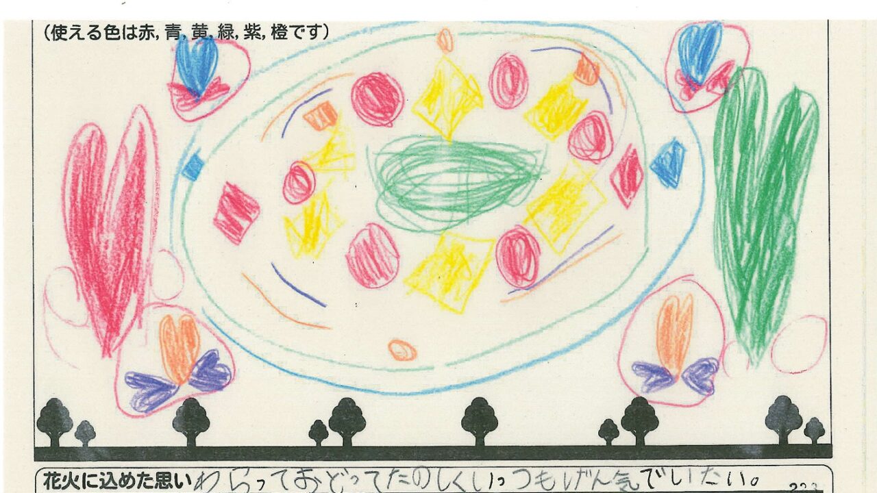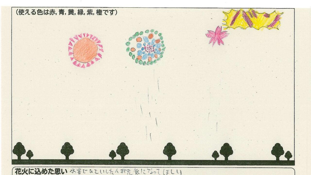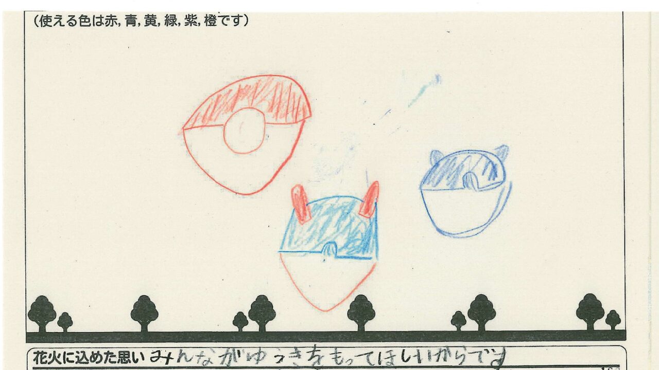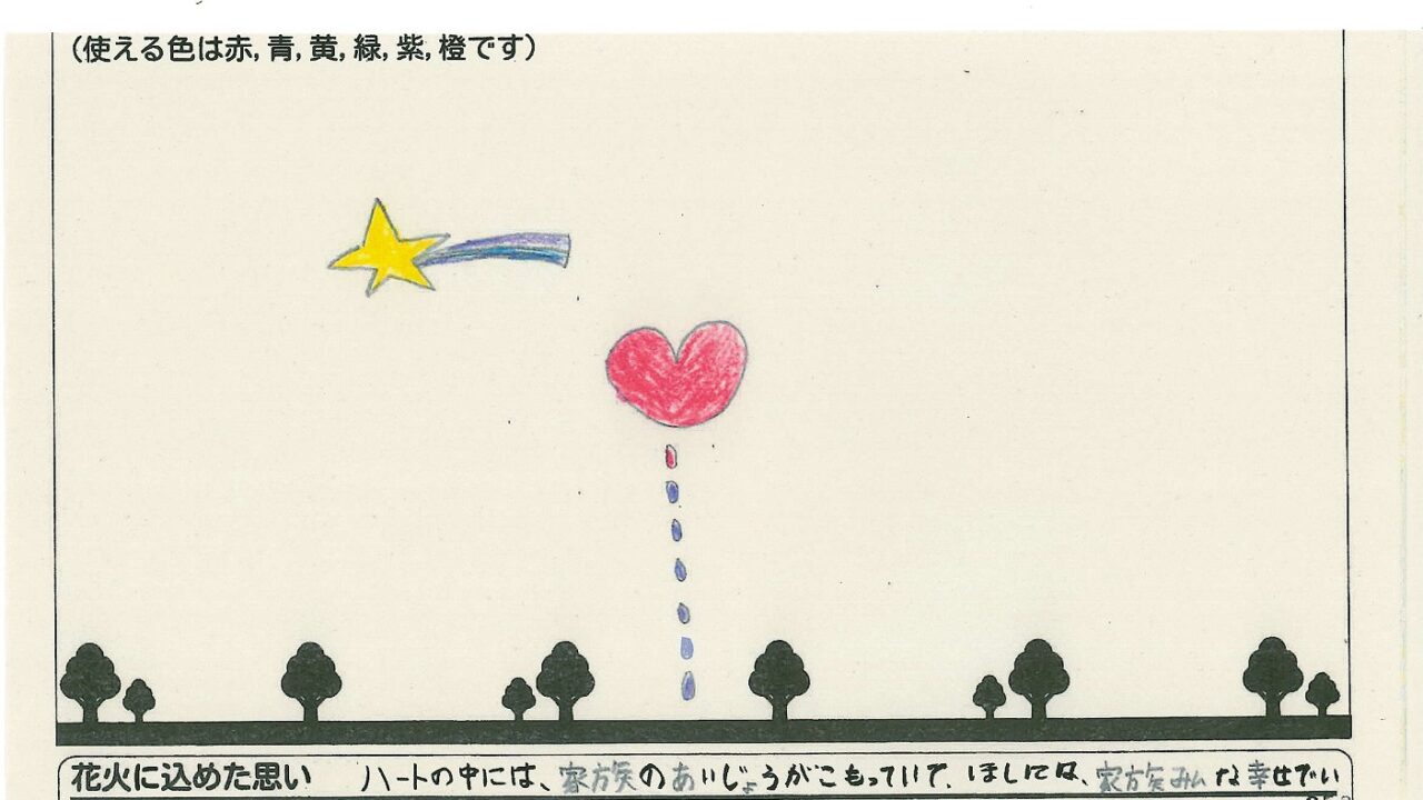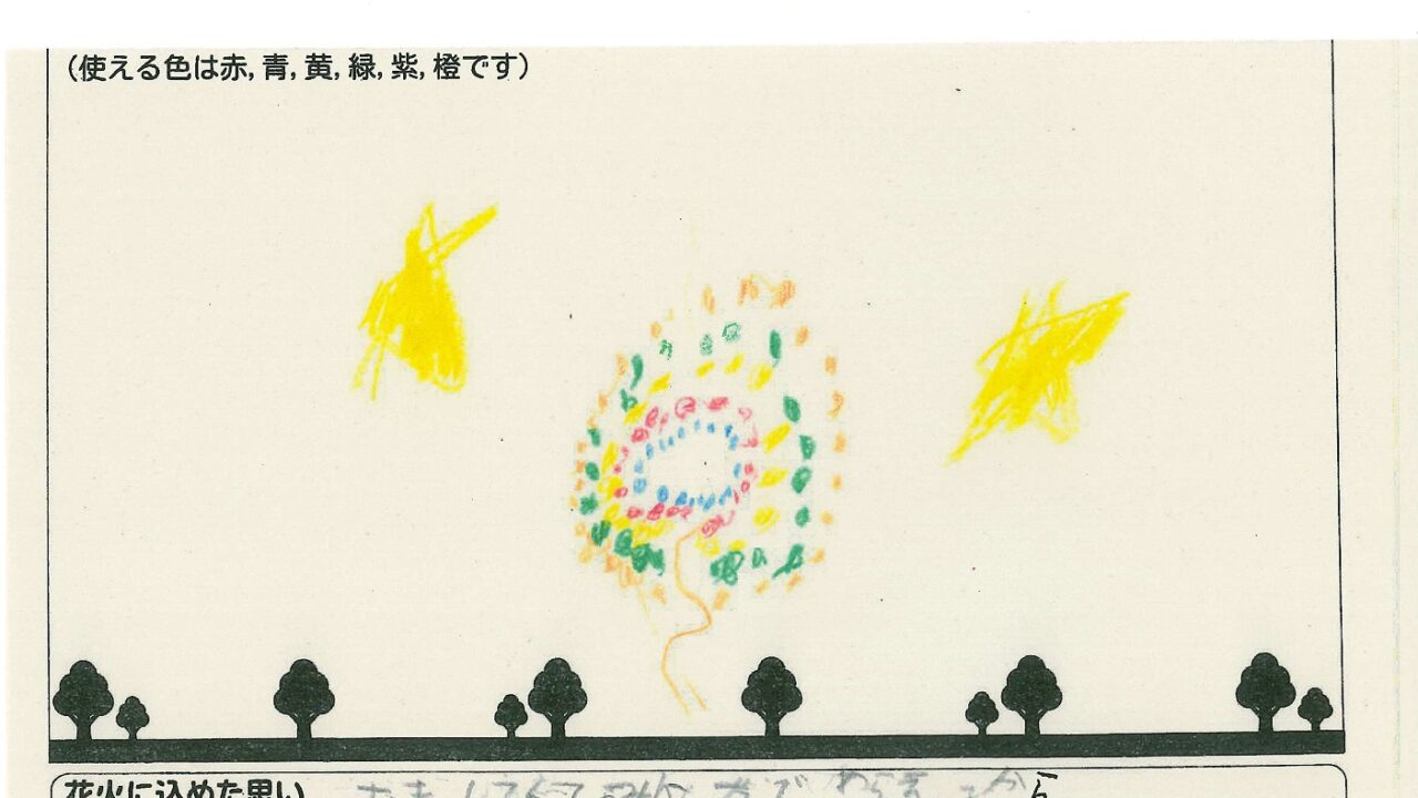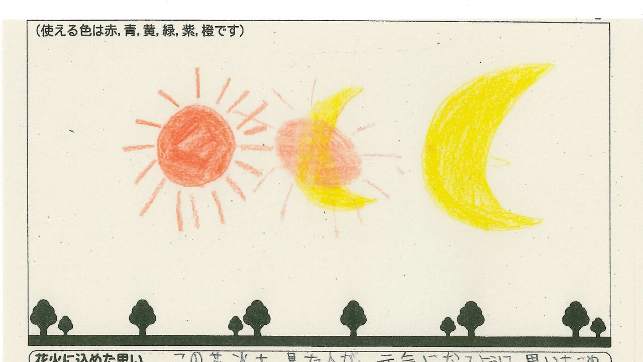 「家族と見たい花火」をテーマに、市内小学生が描いてくれた作品の中から大賞に選ばれた3作品が9月13日(土)に打ち上げられます!