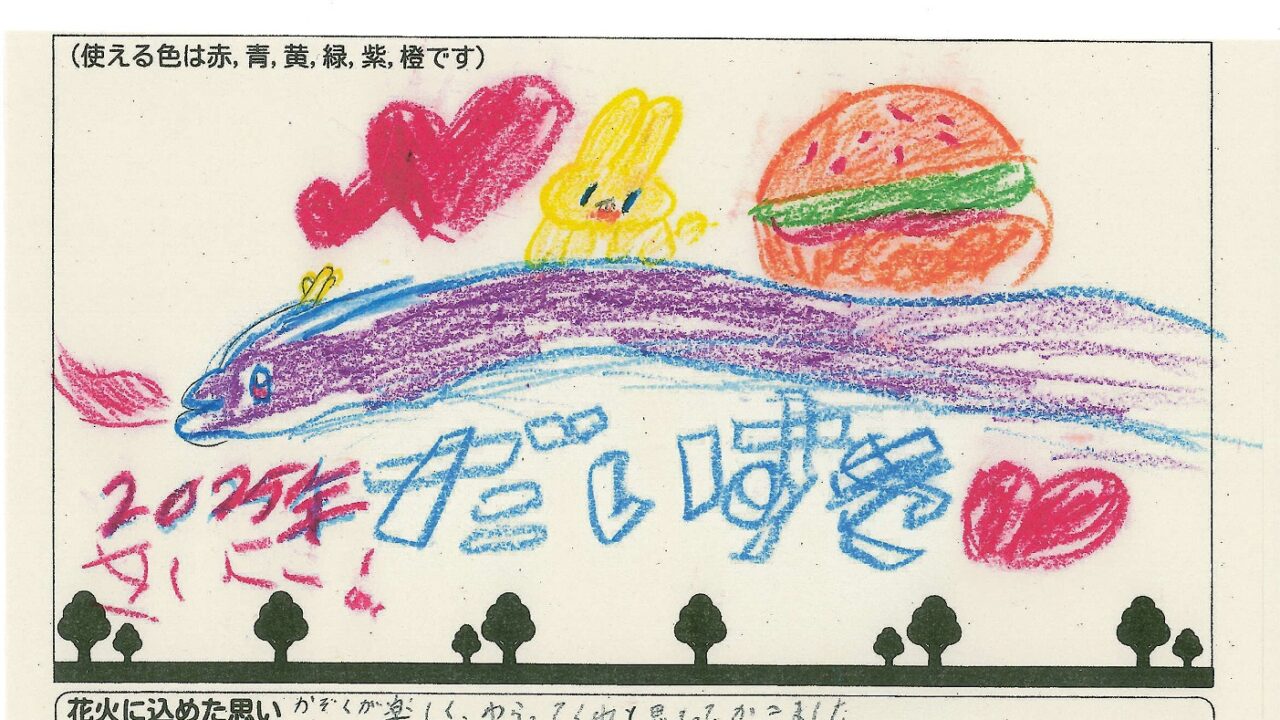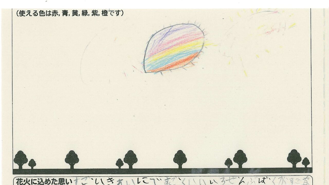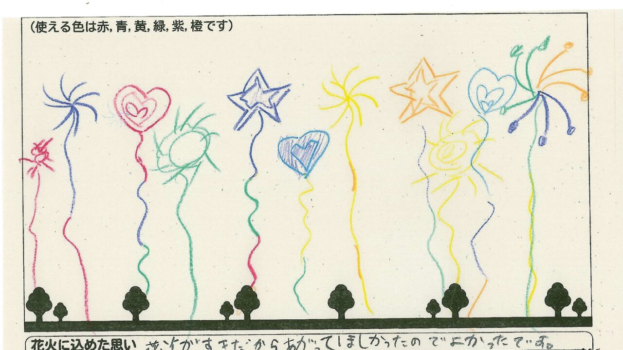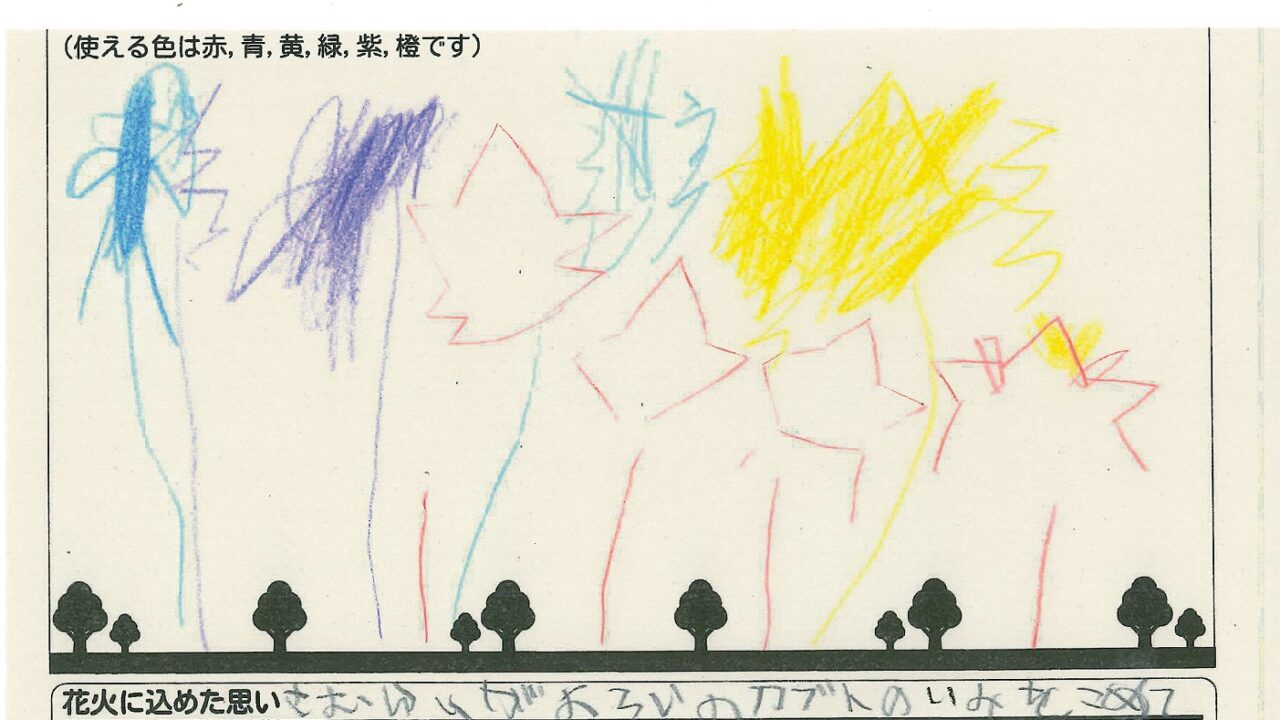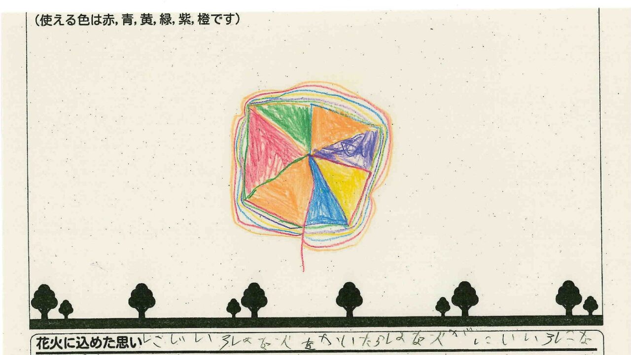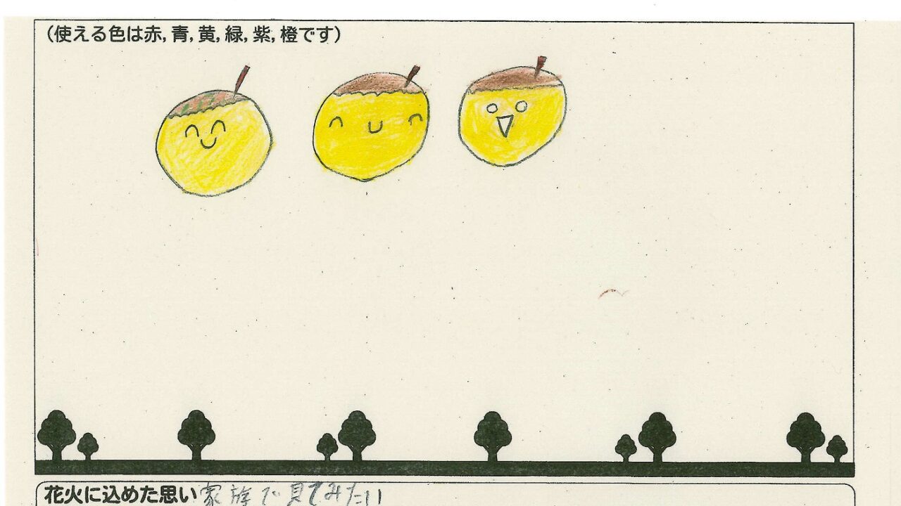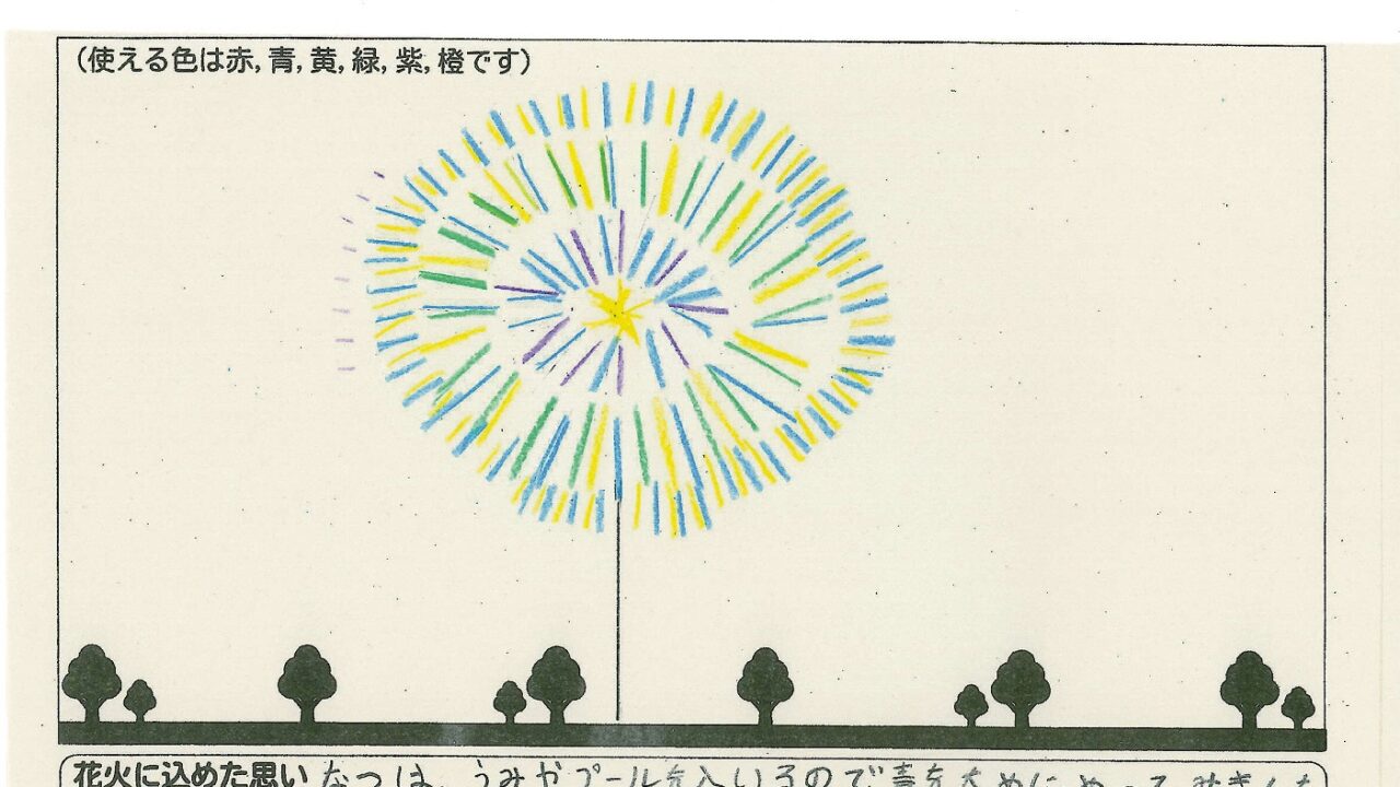 「家族と見たい花火」をテーマに、市内小学生が描いてくれた作品の中から大賞に選ばれた3作品が9月13日(土)に打ち上げられます!