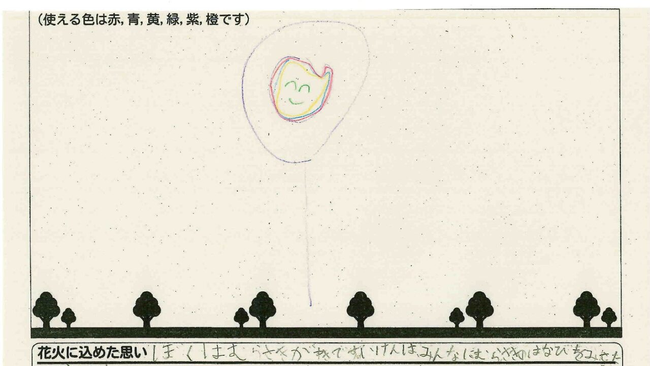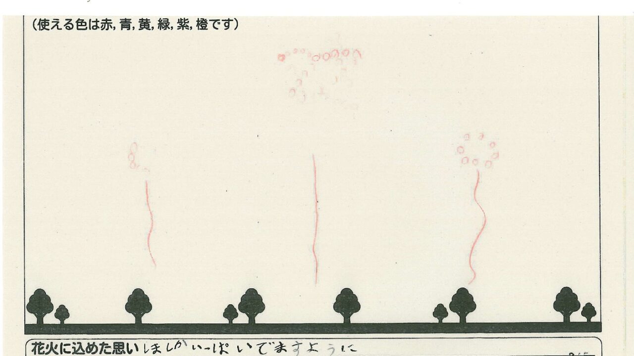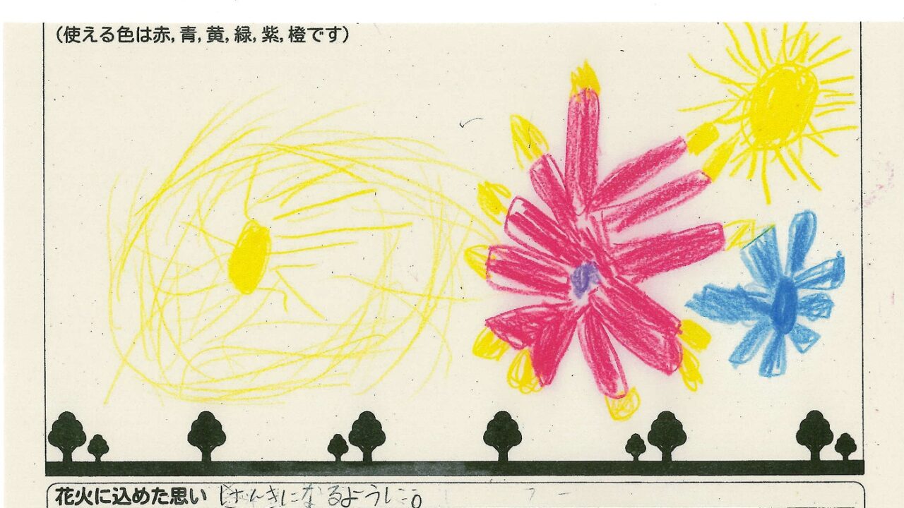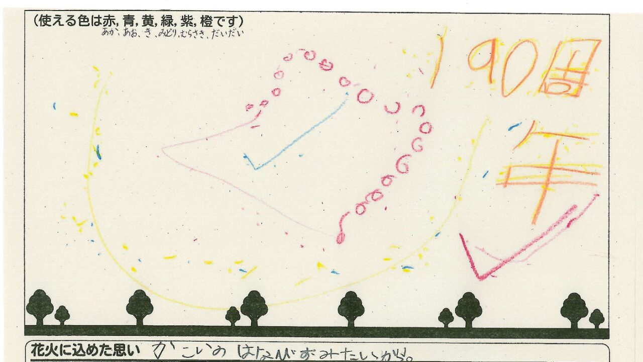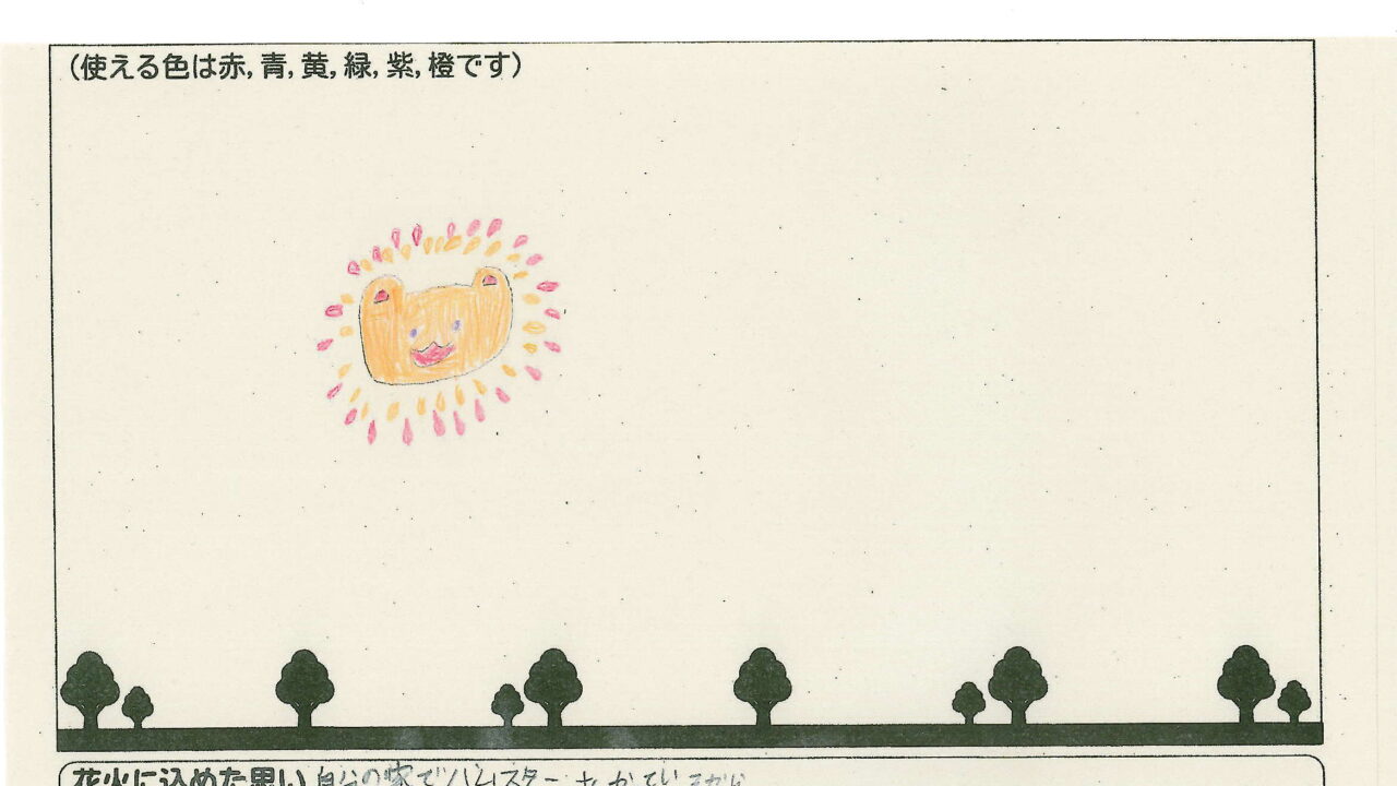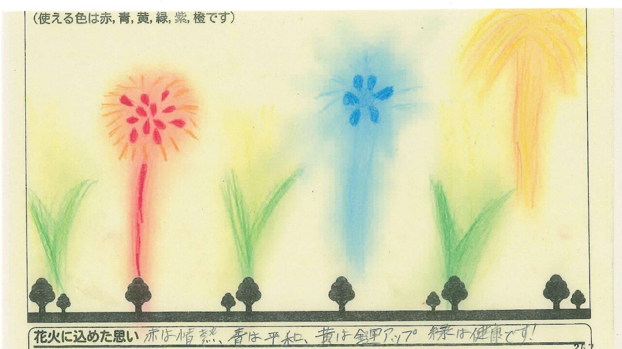 「家族と見たい花火」をテーマに、市内小学生が描いてくれた作品の中から大賞に選ばれた3作品が9月13日(土)に打ち上げられます!