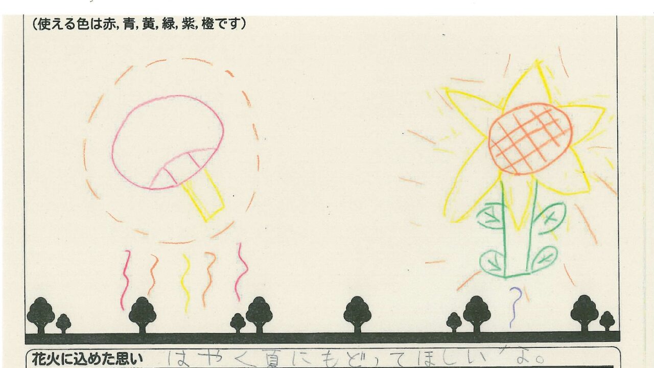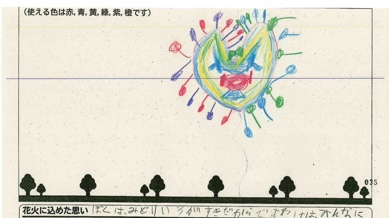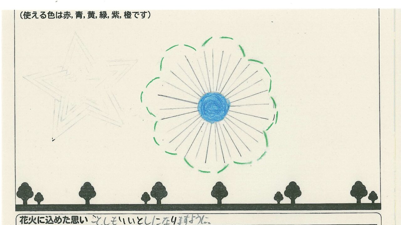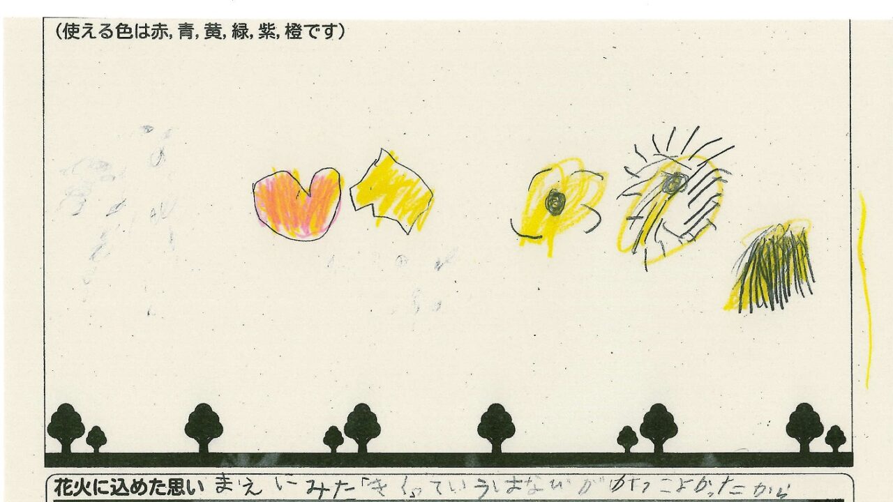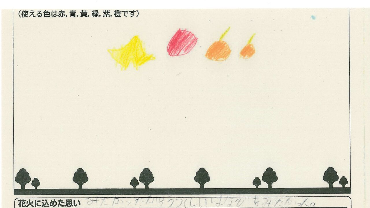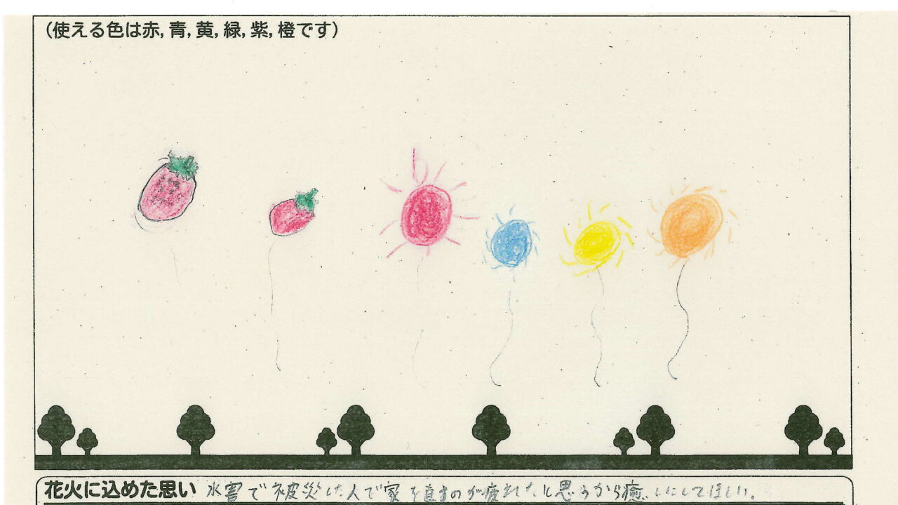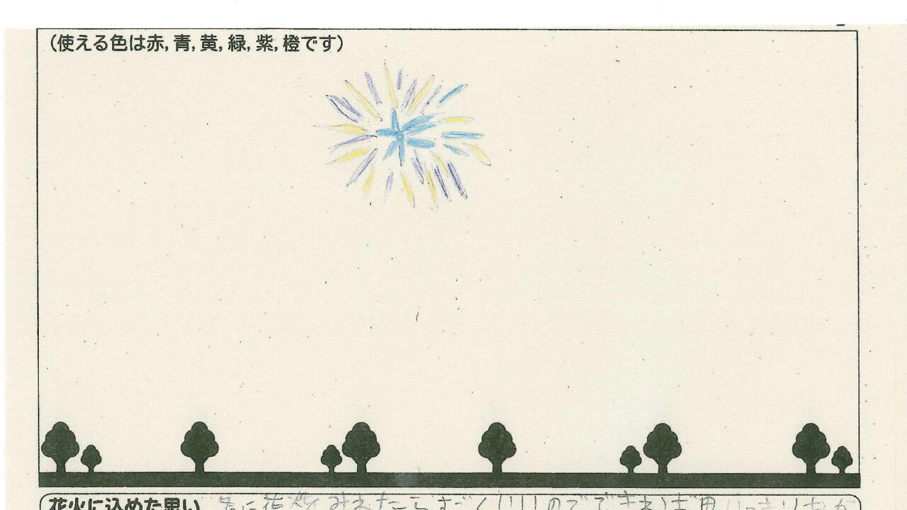 「家族と見たい花火」をテーマに、市内小学生が描いてくれた作品の中から大賞に選ばれた3作品が9月13日(土)に打ち上げられます!