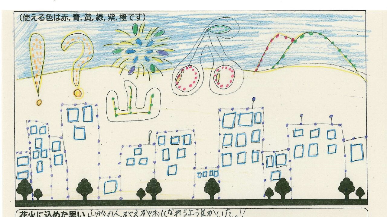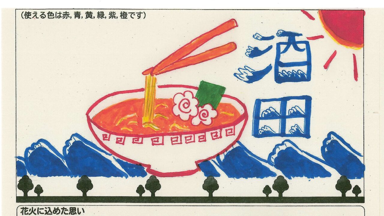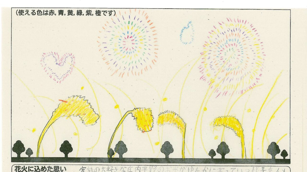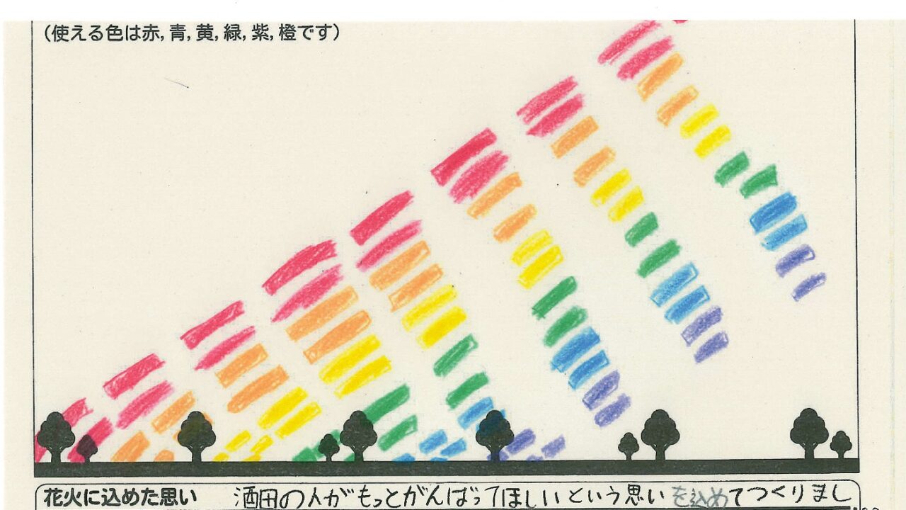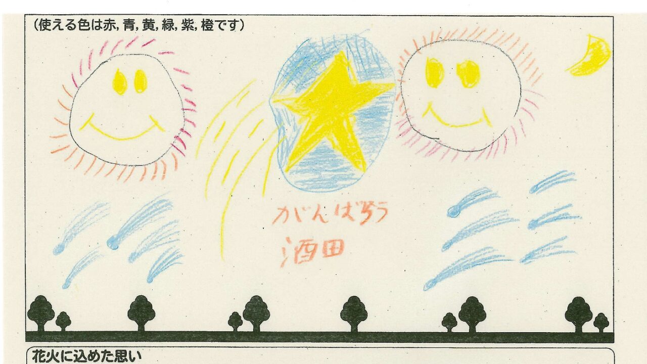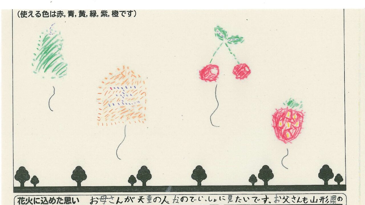 「酒田の花火がもっと市民から愛されてずっと続いてほしい!」という想いから、酒田東高校の生徒が企画した「お絵かき花火」。「家族と見たい花火」をテーマに、市内小学生が描いてくれた全作品を紹介します!