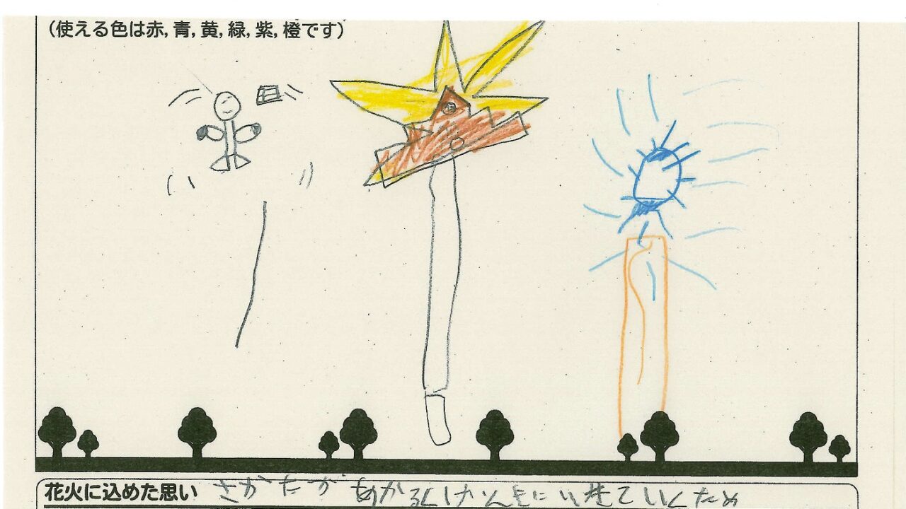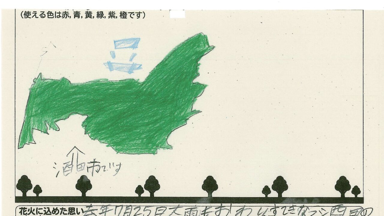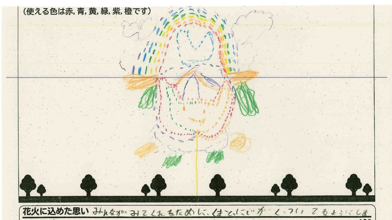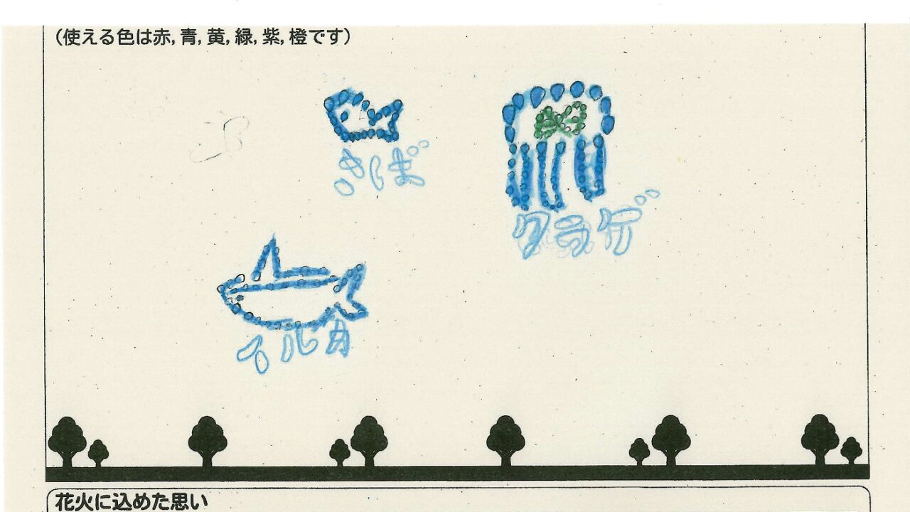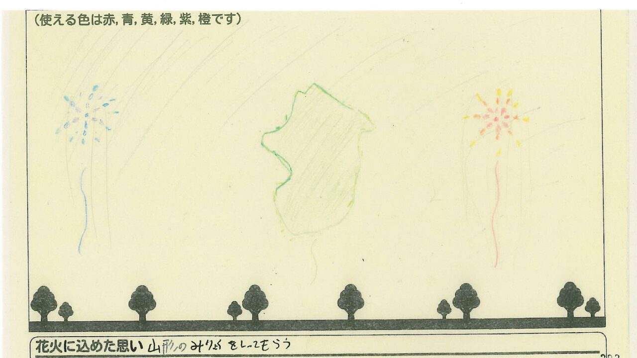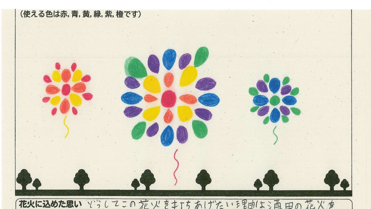 「酒田の花火がもっと市民から愛されてずっと続いてほしい!」という想いから、酒田東高校の生徒が企画した「お絵かき花火」。「家族と見たい花火」をテーマに、市内小学生が描いてくれた全作品を紹介します!