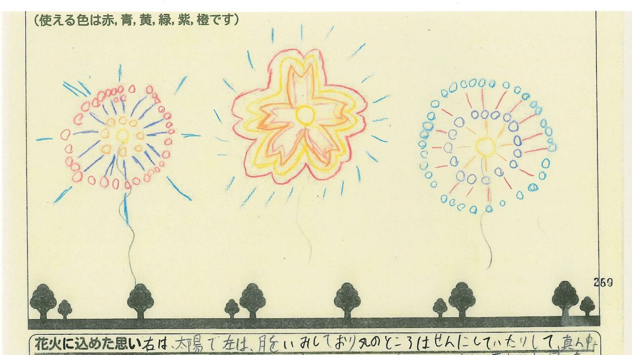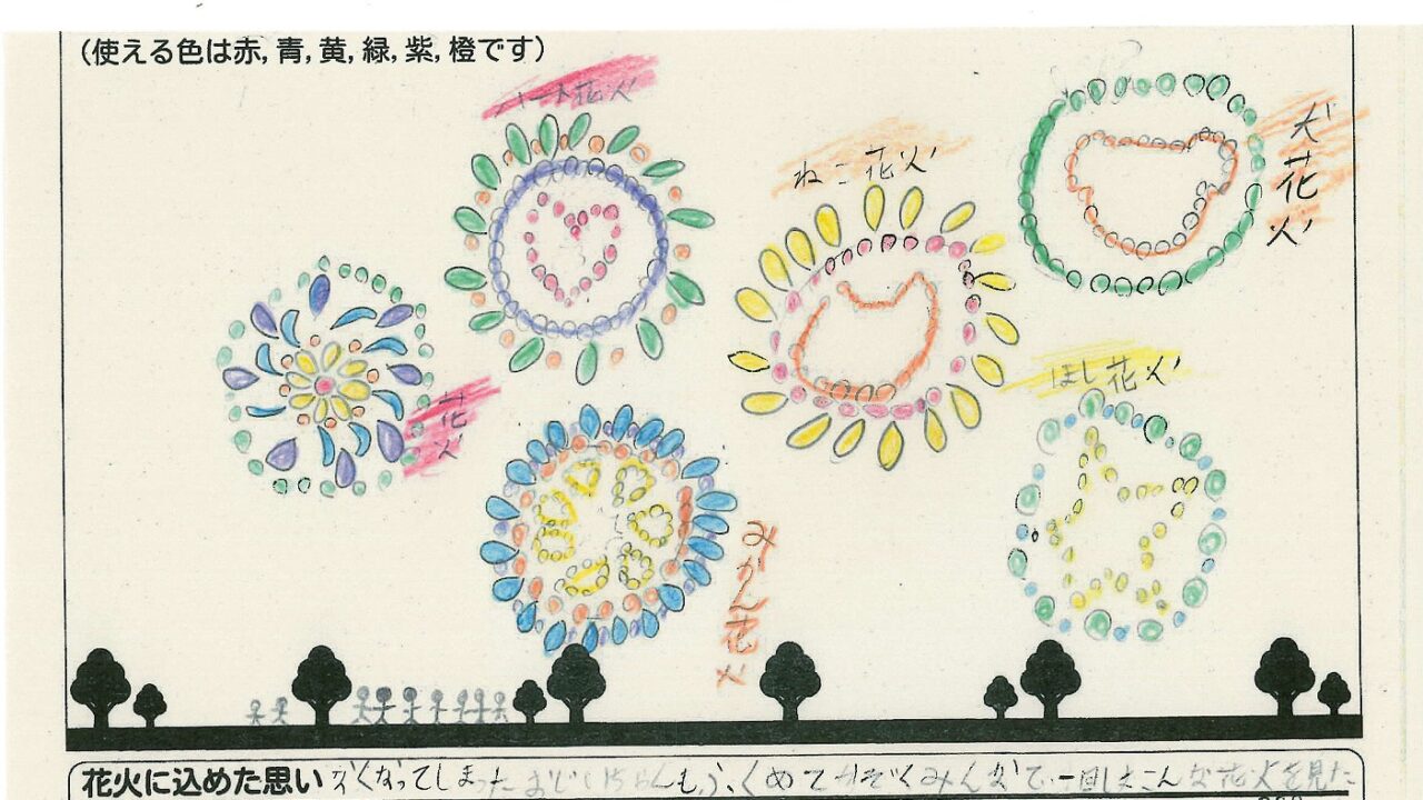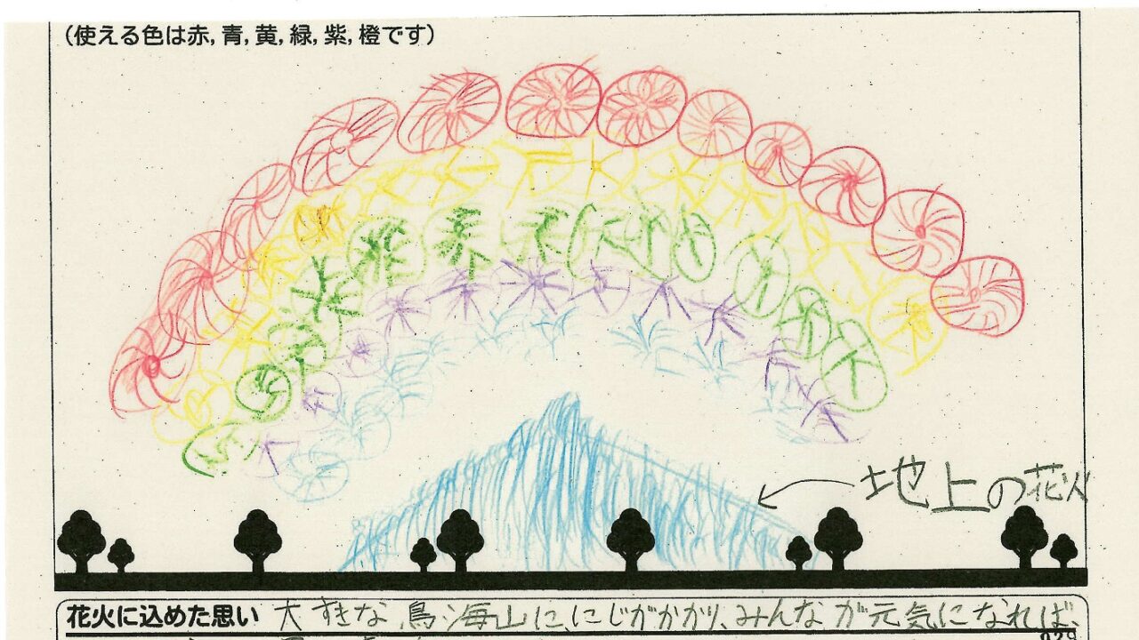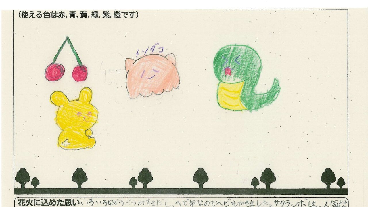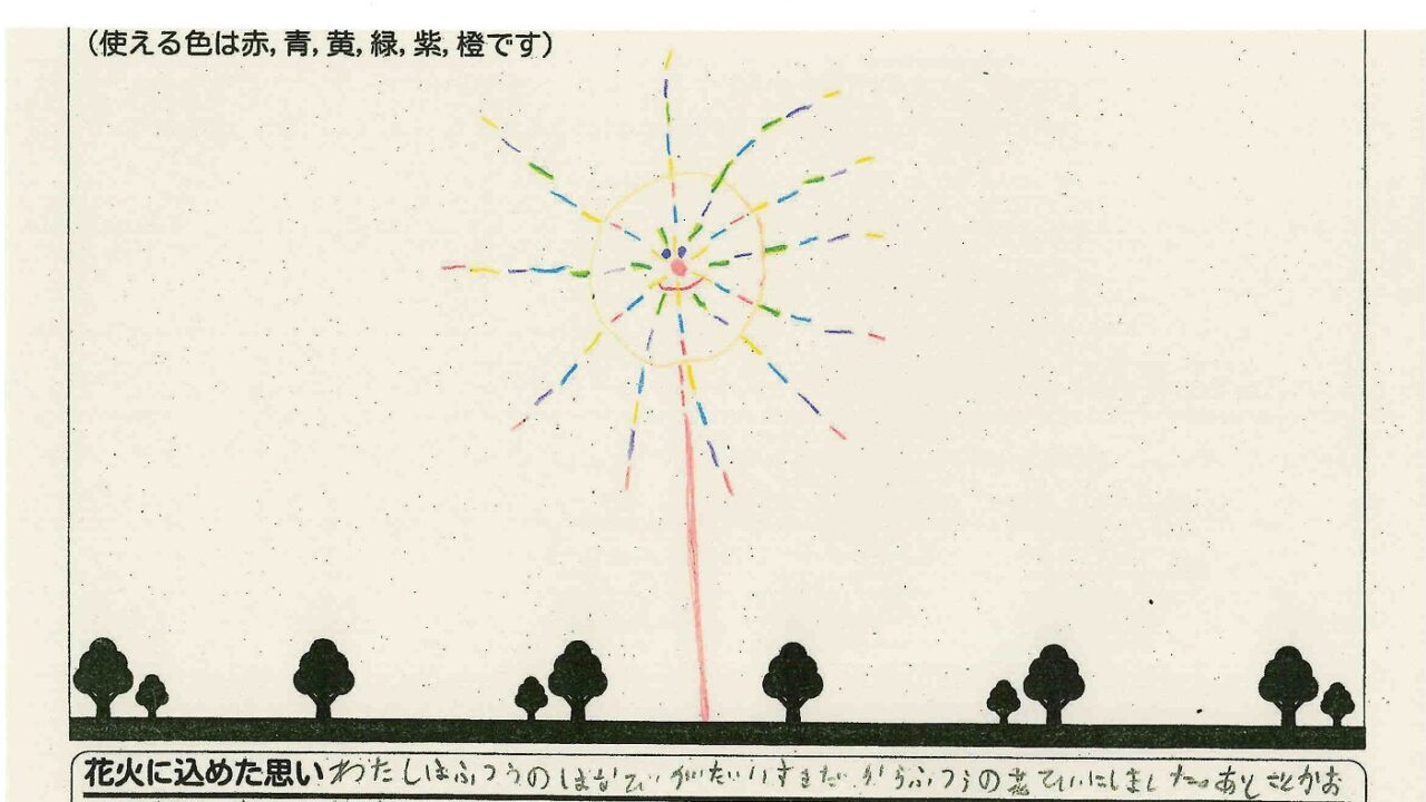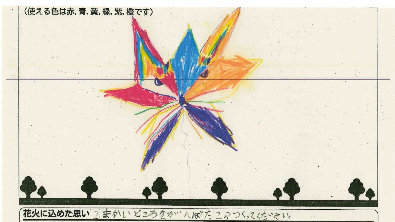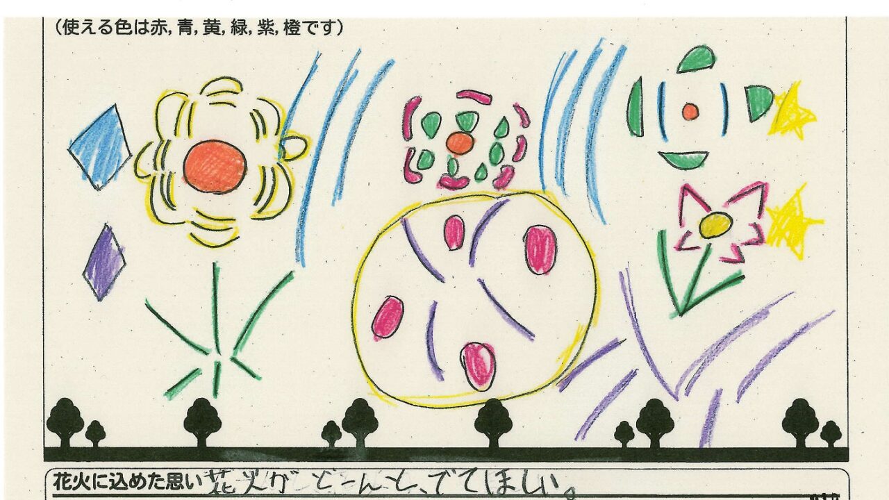 「酒田の花火がもっと市民から愛されてずっと続いてほしい!」という想いから、酒田東高校の生徒が企画した「お絵かき花火」。「家族と見たい花火」をテーマに、市内小学生が描いてくれた全作品を紹介します!