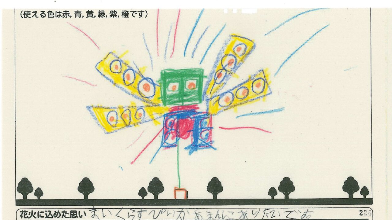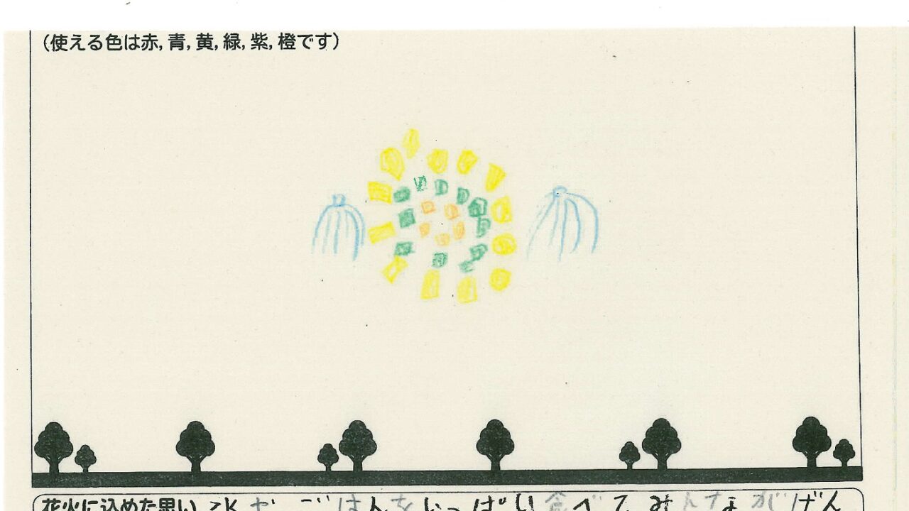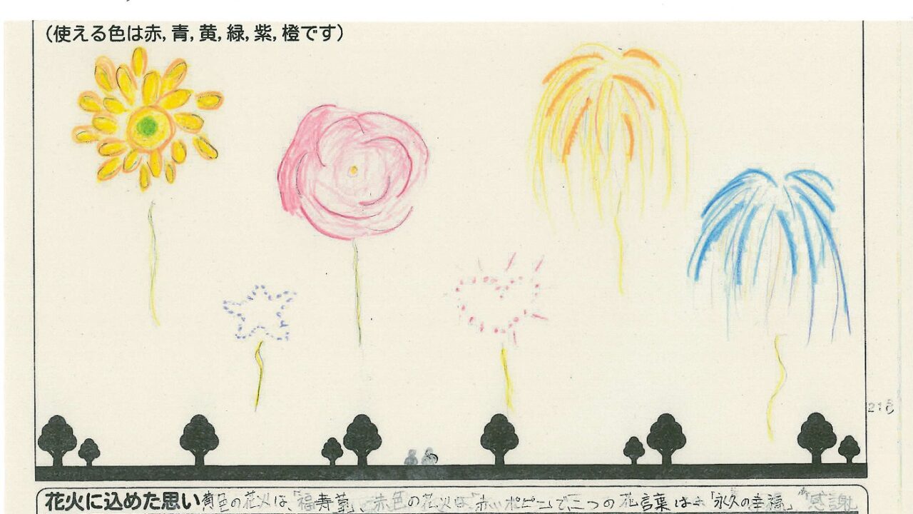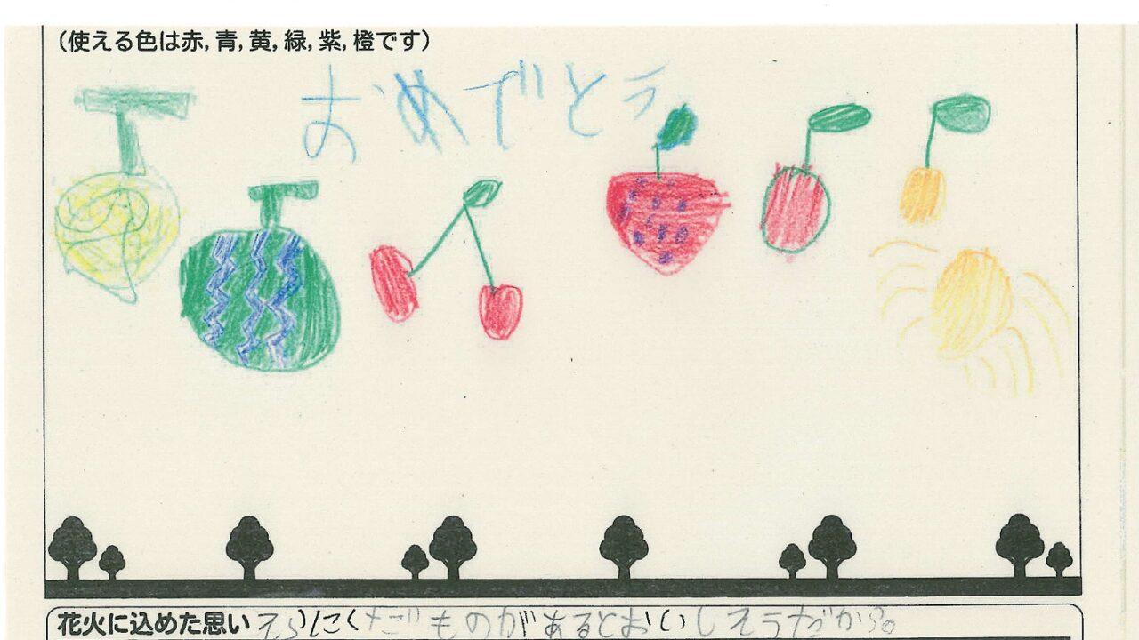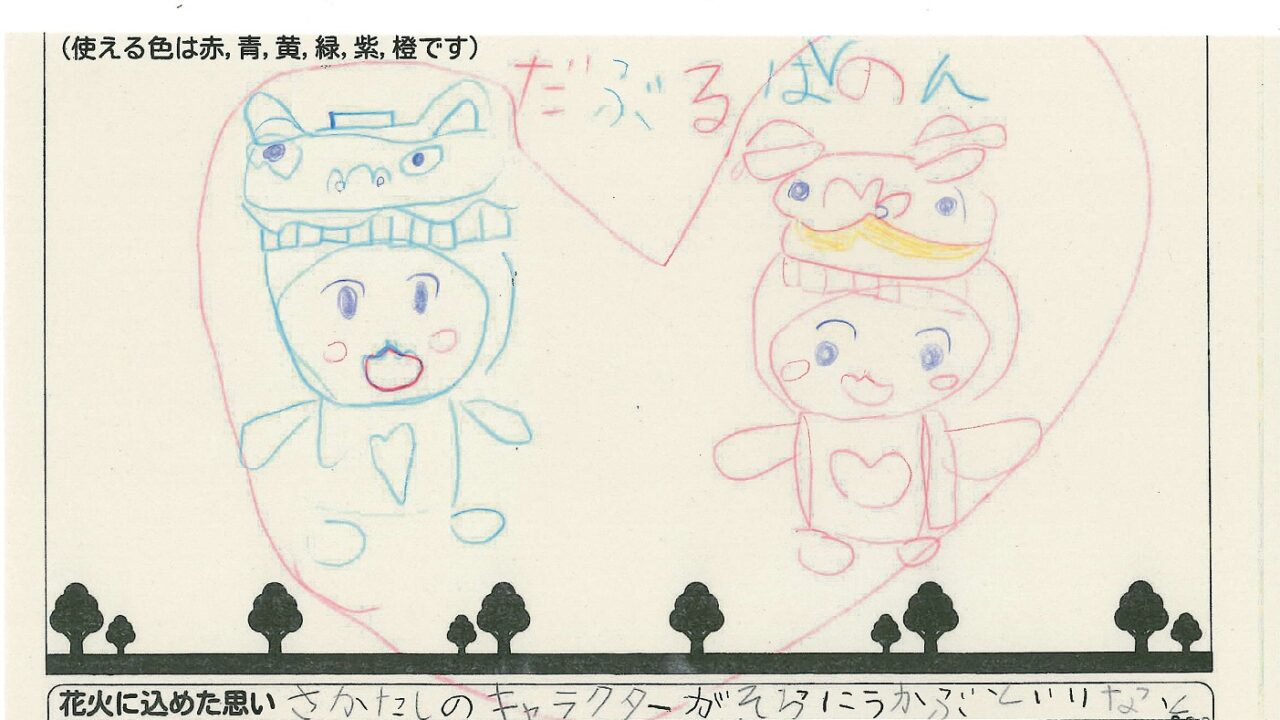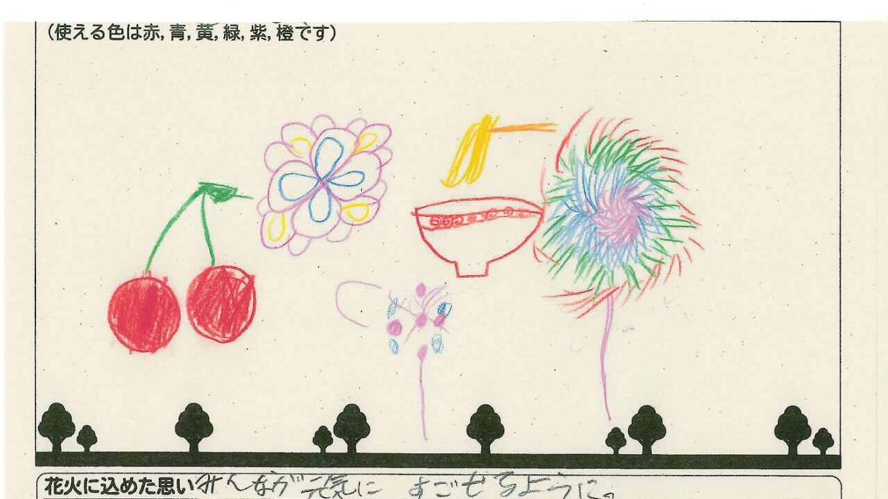 「酒田の花火がもっと市民から愛されてずっと続いてほしい!」という想いから、酒田東高校の生徒が企画した「お絵かき花火」。「家族と見たい花火」をテーマに、市内小学生が描いてくれた全作品を紹介します!