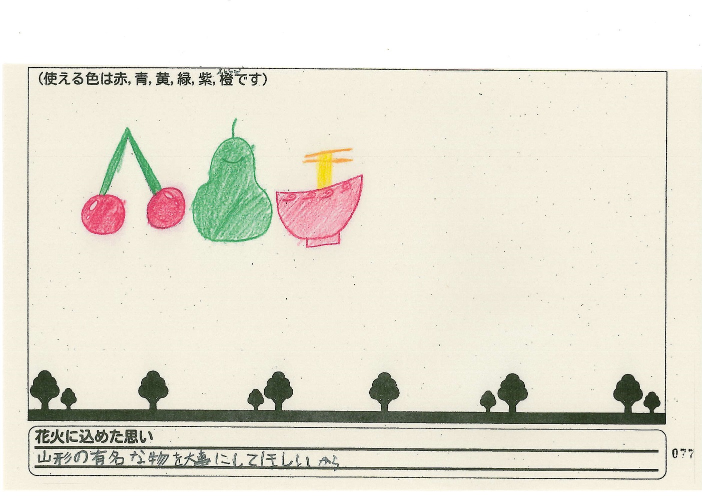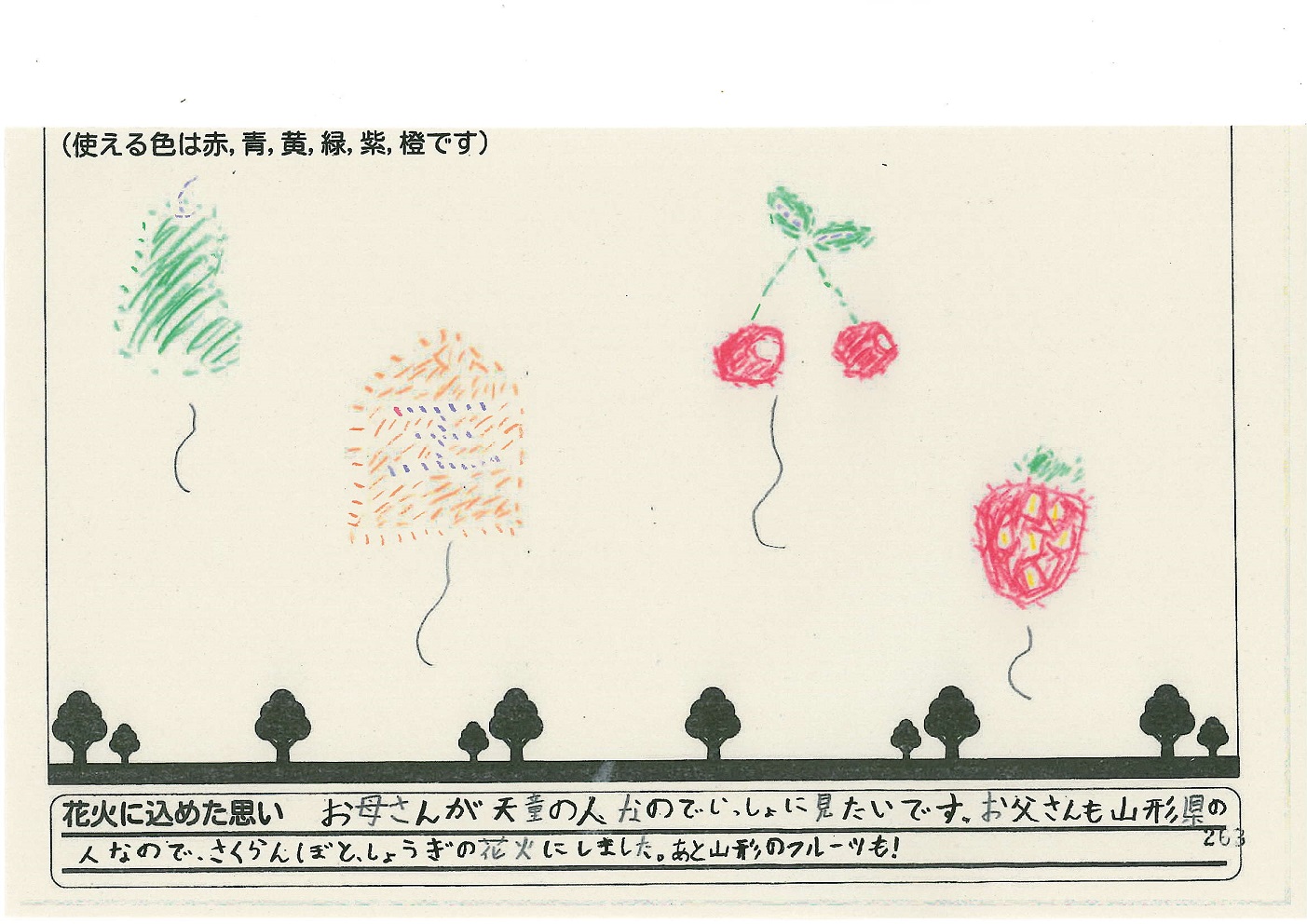 「酒田の花火がもっと市民から愛されてずっと続いてほしい!」という想いから、酒田東高校の生徒が企画した「お絵かき花火」。「家族と見たい花火」をテーマに、市内小学生が描いてくれた全作品を紹介します!